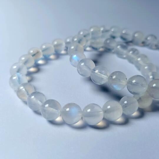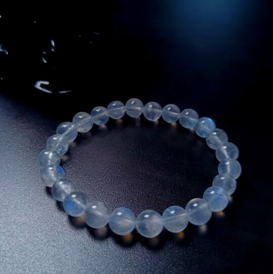 月光石手链 月光石水晶 少堂主古珠玉 一串一串又一串 1. 神话与神秘学: • 古希腊人认为月光石是月亮的碎片,象征神圣与治愈。 • 印度教将其视为“月神之石”,寓意智慧与灵性成长。 • 中世纪欧洲用于抵御邪恶,保护夜间旅行者。 2. 现代占星与水晶疗法: • 月光石:关联月亮星座(巨蟹、天蝎、双鱼),被认为平衡情绪、增强直觉。 • 功效声称:平复焦虑、促进睡眠、激发创造力(多属个人体验,无科学验证)。