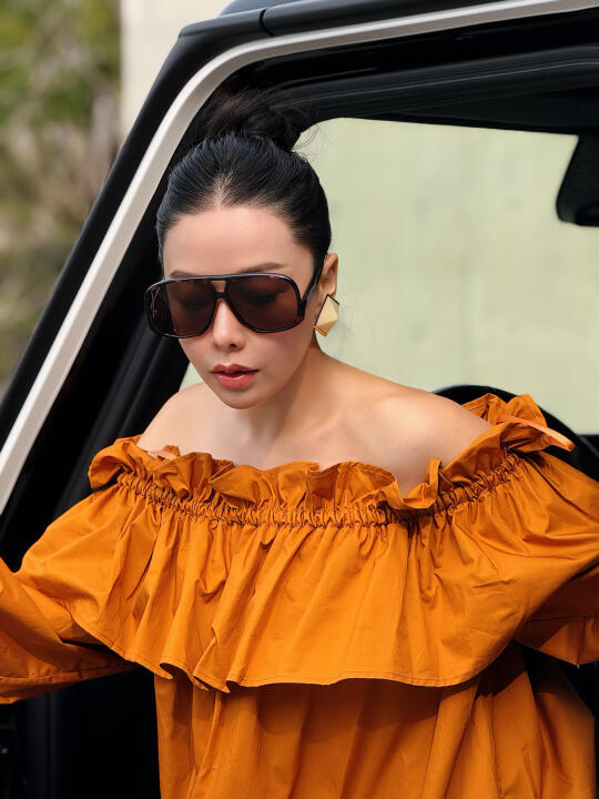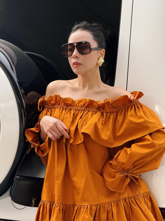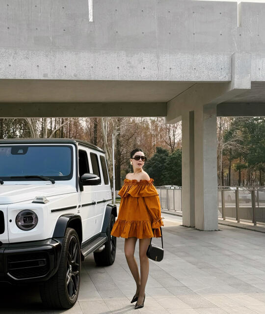 美女与汽车 永远做自己喜欢的样子 人和车拍照 她很迷人因为她擅长做自己 奔驰大G熊猫色 ysl一字肩连衣裙