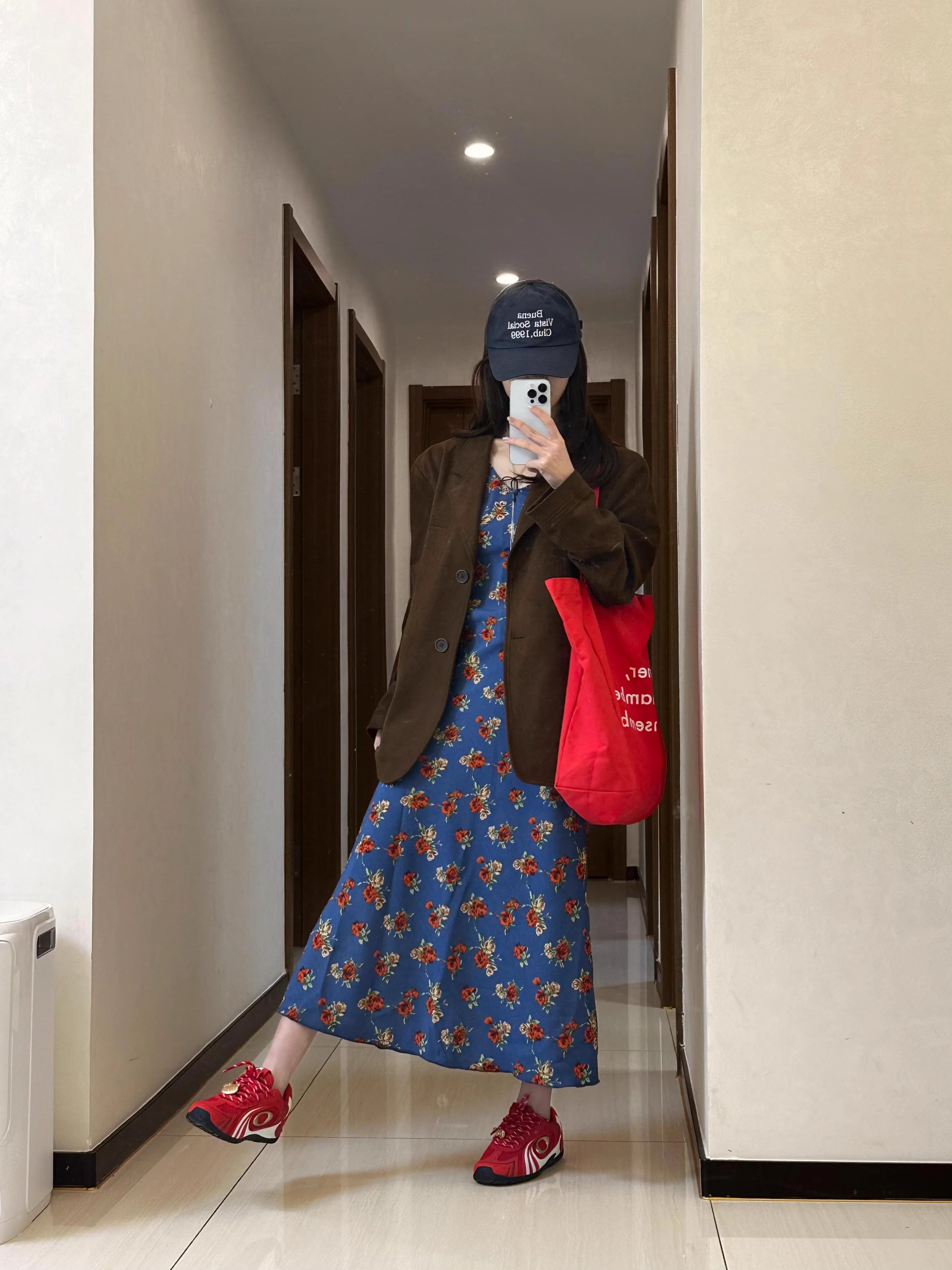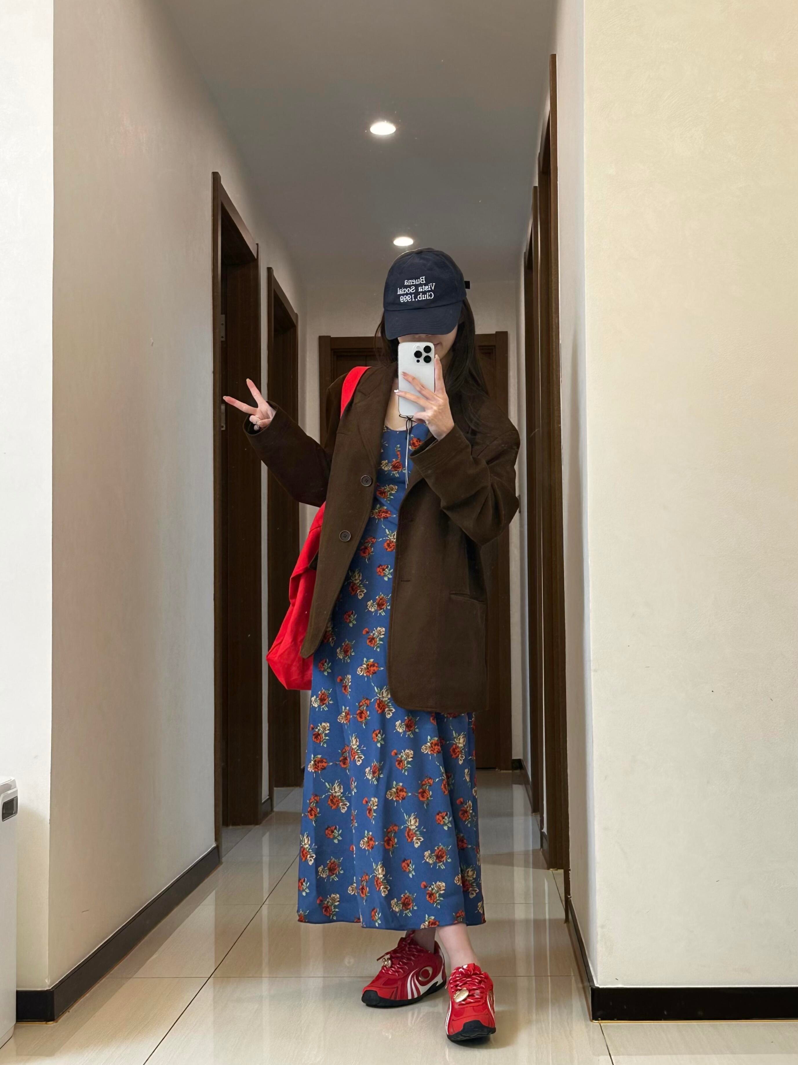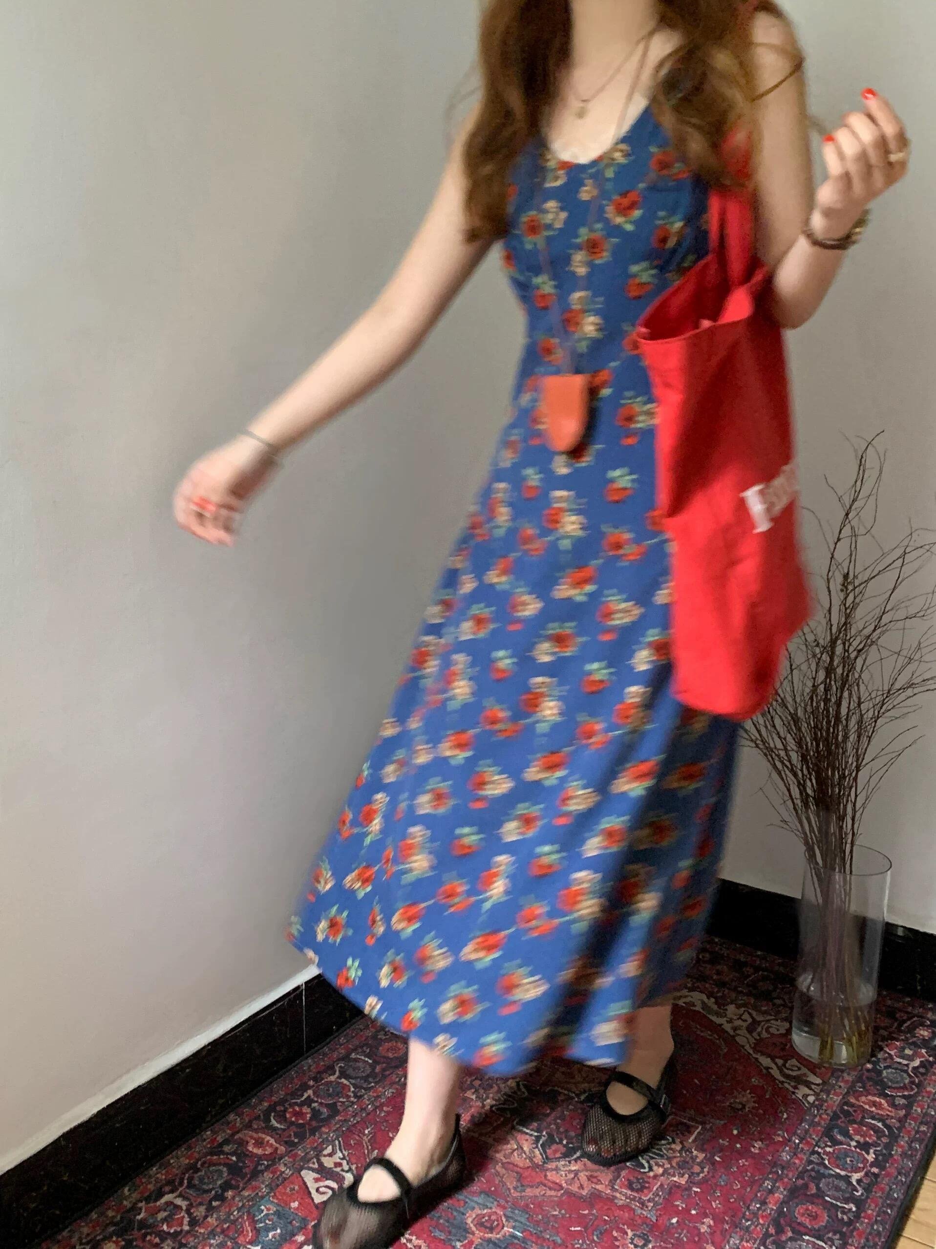 蓝色碎花吊带背心连衣裙子2025新款初春气质漂亮v领度假长裙女夏