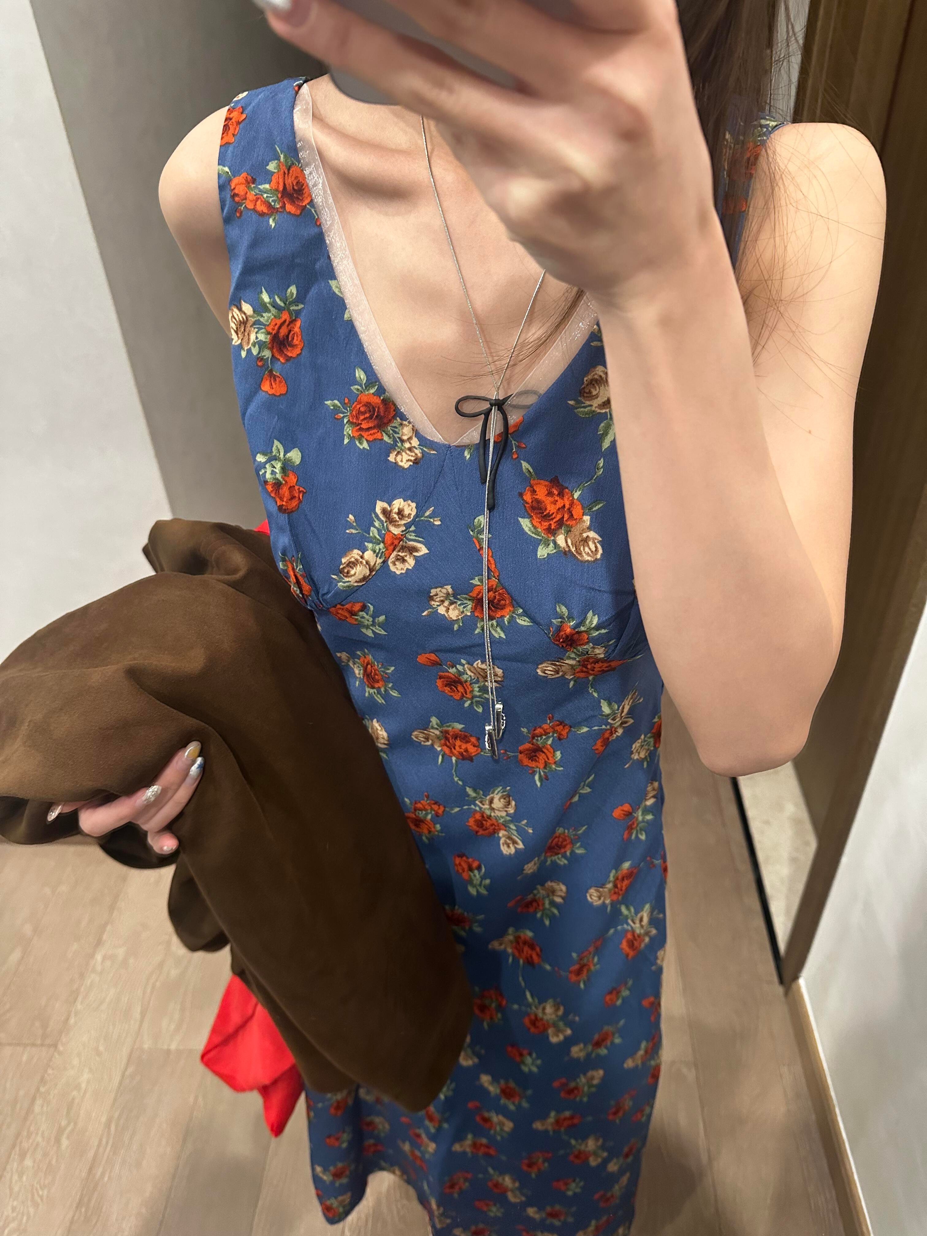 设计感显瘦v领无袖碎花长裙