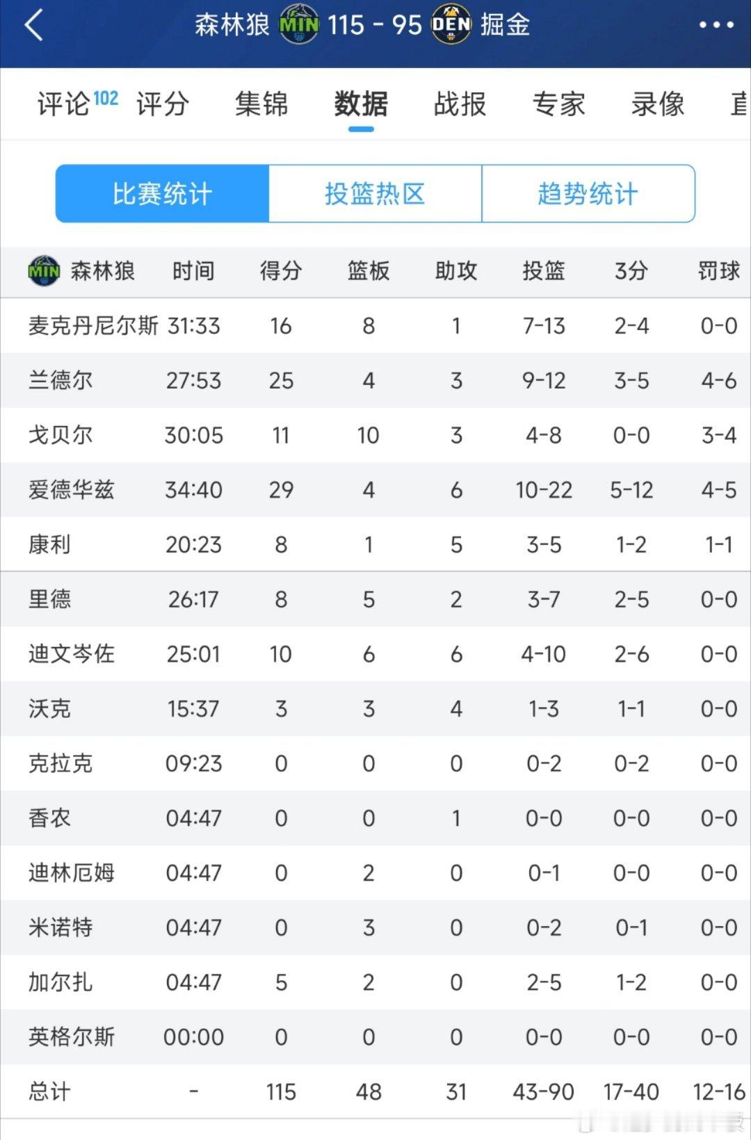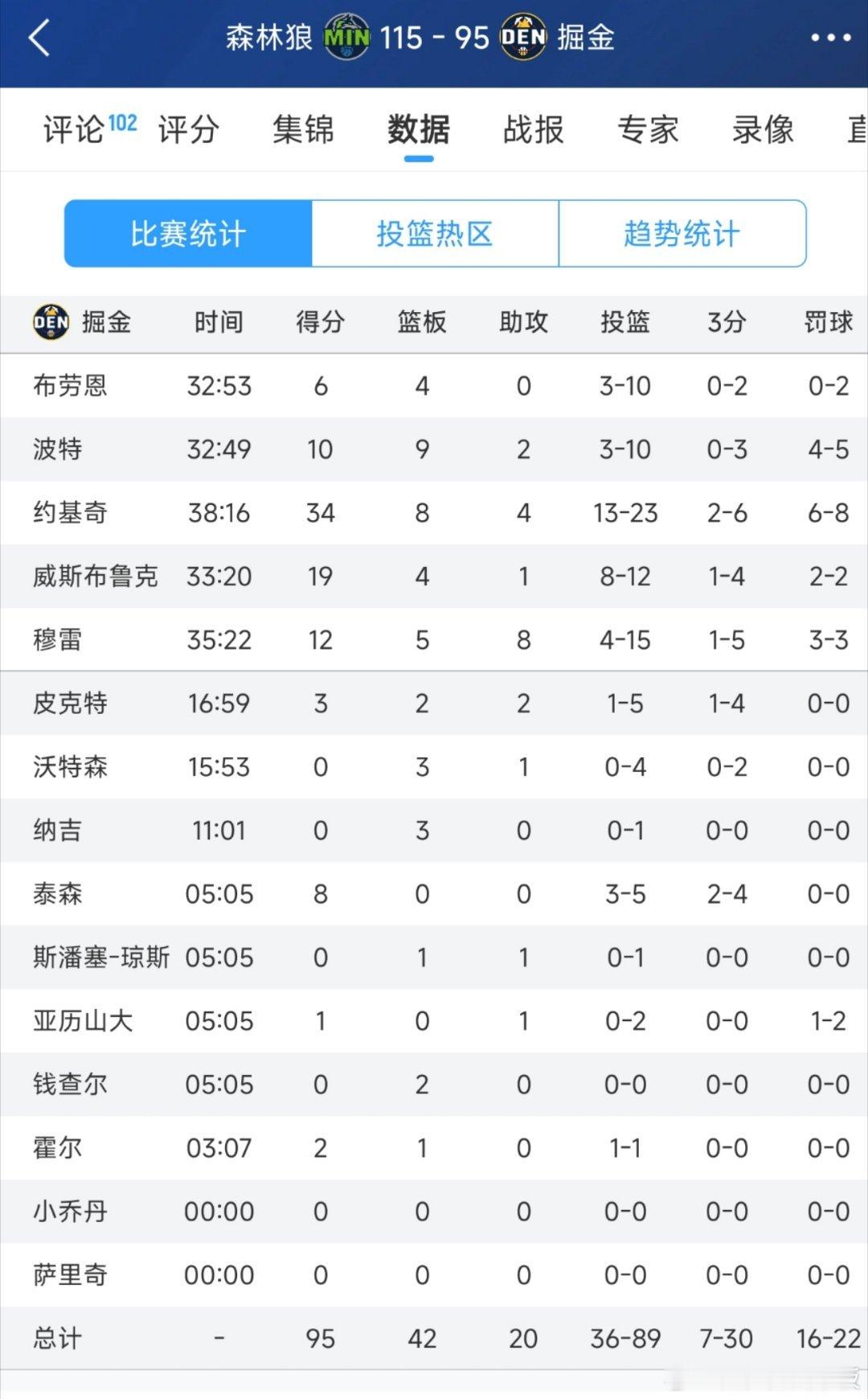 掘金主场95-115惨败森林狼,赛季被对手三杀的同时,排名被灰熊反超[思考]爱德