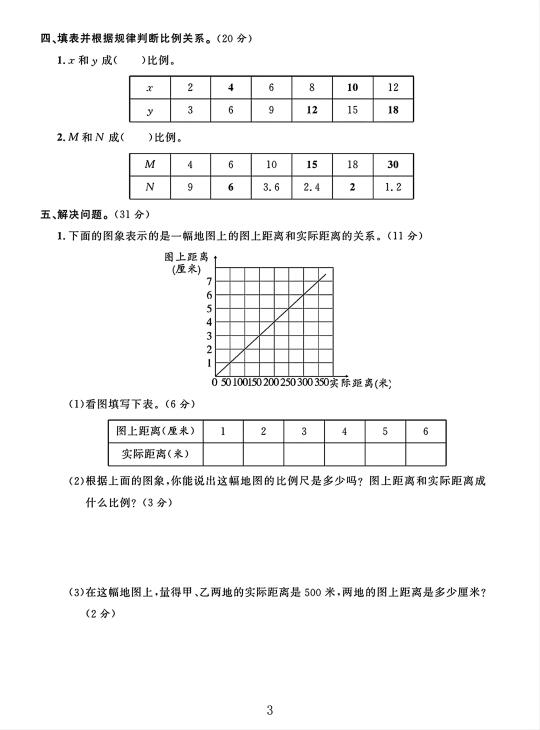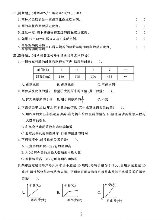 冀教版 六年级下册数学 第三单元测试卷 试卷 单元测试 电子版可打印