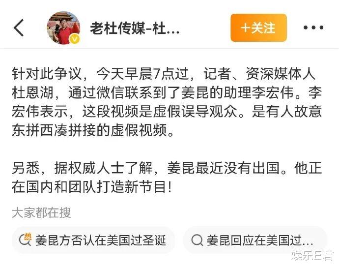 这下兜不住了,视频拍摄者也马上出来澄清,你们不要黑姜昆老师,这个视频明明不是圣诞节拍的,是12月19日,在加州豪宅拍的,你们再瞎说我告你们哦。