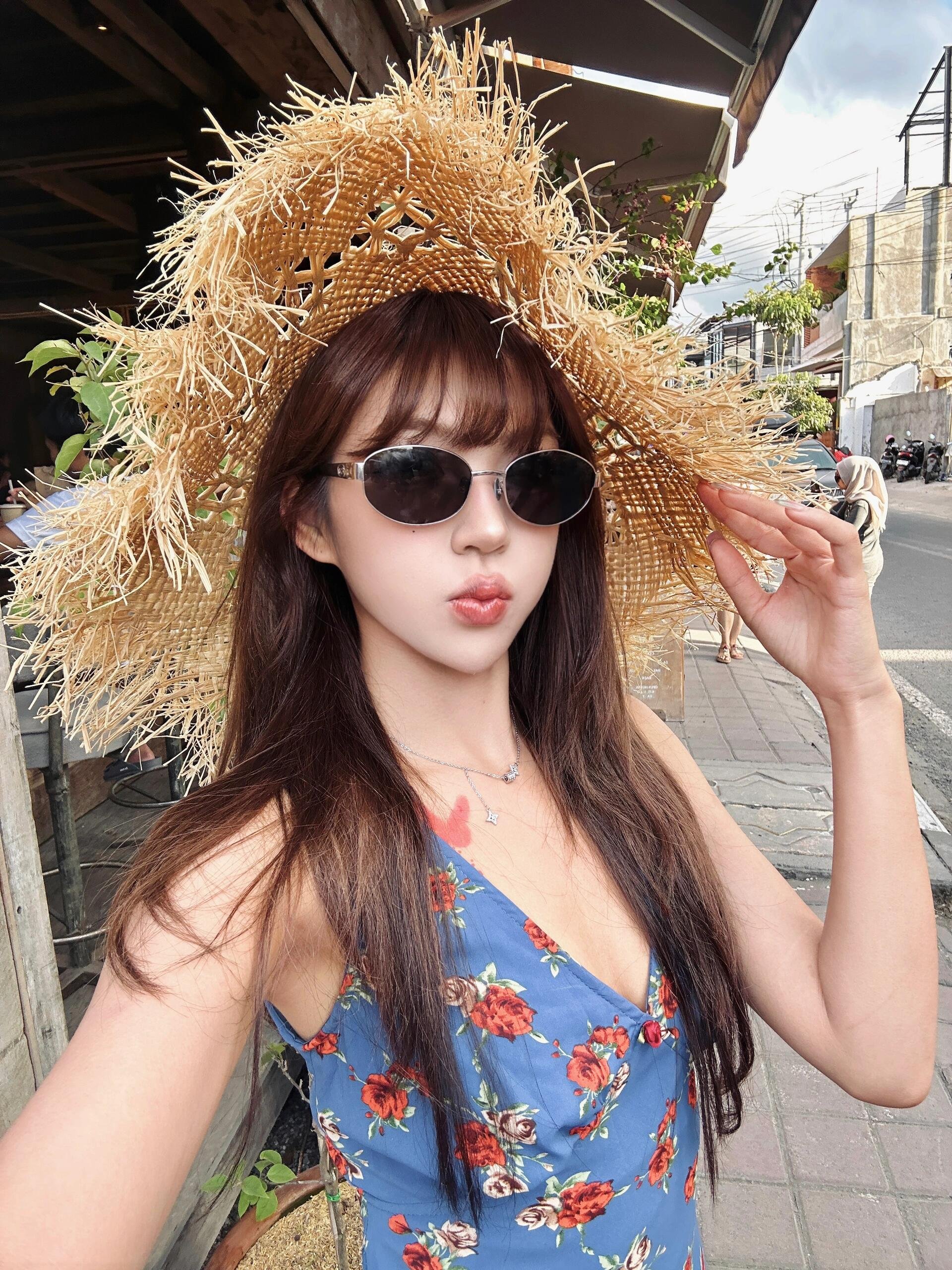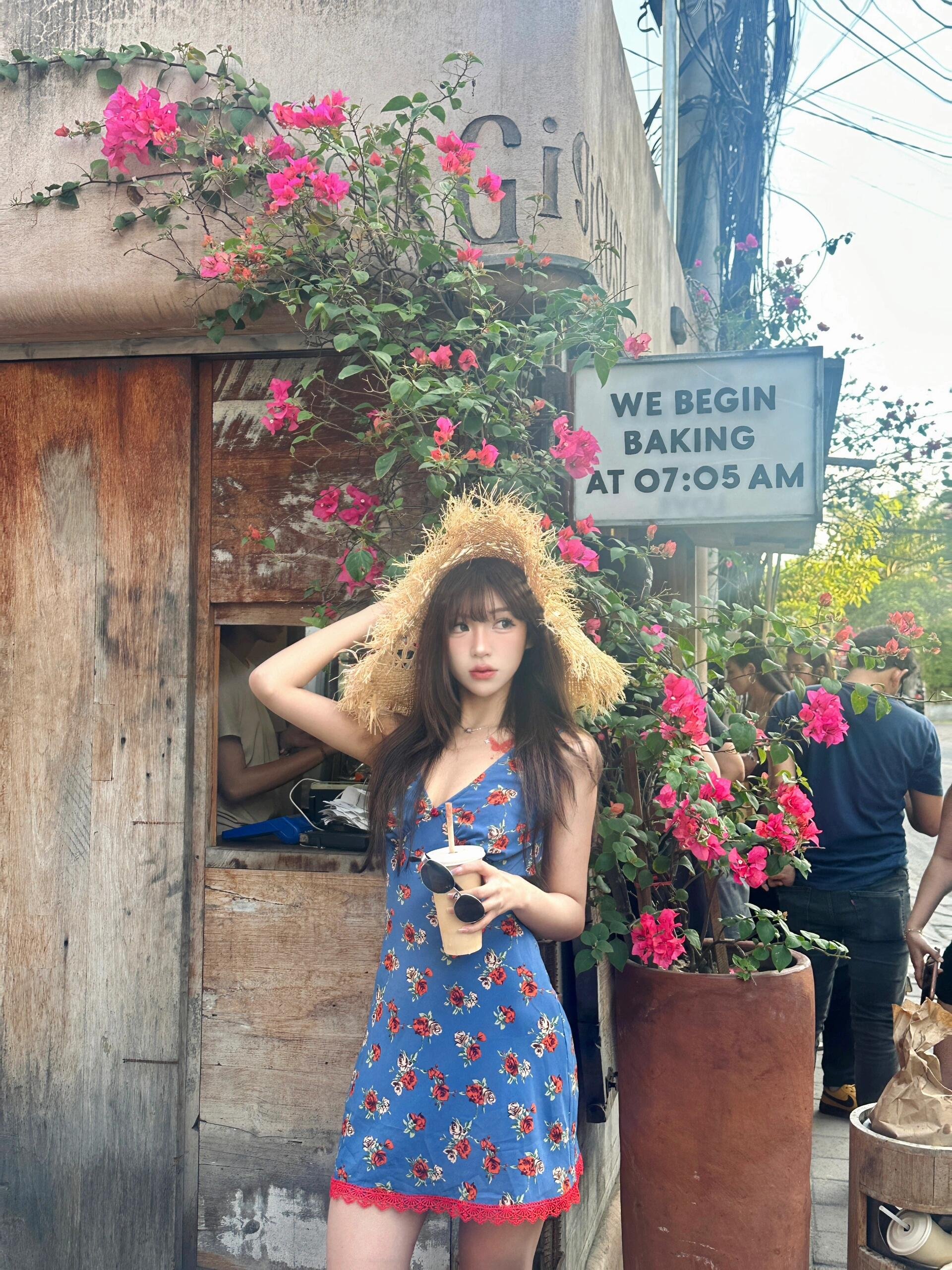 蓝色碎花吊带连衣裙好似把花园穿身上了!