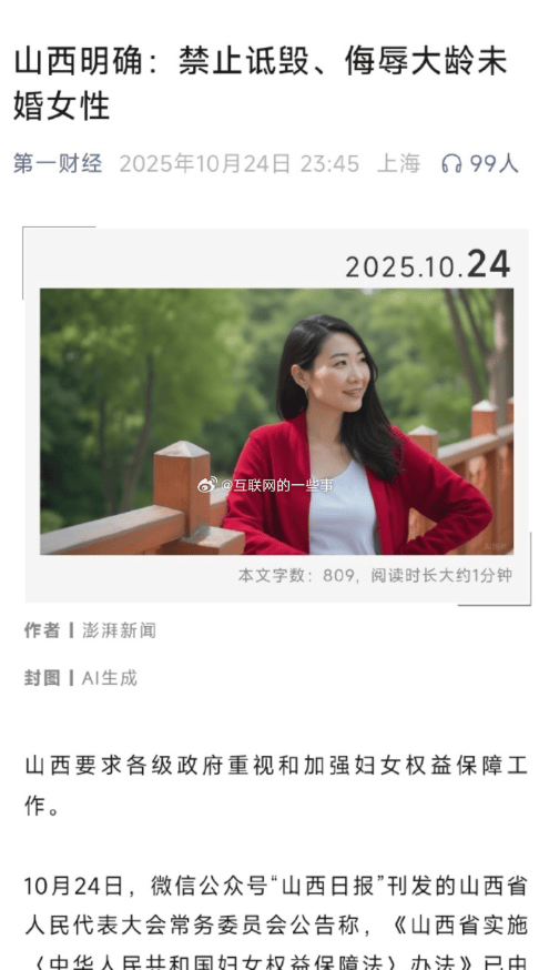 山西明确禁止诋毁侮辱大龄未婚女性的立法条款一经公布,便在社会上引发了不小的争议。不可否认,立法初衷或许是为了维护大龄未婚女性这一群体的合法权益,减少社会上对她们的不当言论和歧视行为,这一点具有一定的积极意义。但仔细推敲便会发现,该条款存在明显的局限性,其最受诟病之处在于保护范围的狭隘性 —— 它仅仅将保护的触角伸向了大龄未婚女性这一部分群体,甚至在这一群体内部,可能也只有少数面临极端诋毁侮辱的人能真正受益,而更多同样可能遭受言语伤害的群体却被排除在外,这种 “选择性保护” 很难让公众真正认同其公平性与全面性。