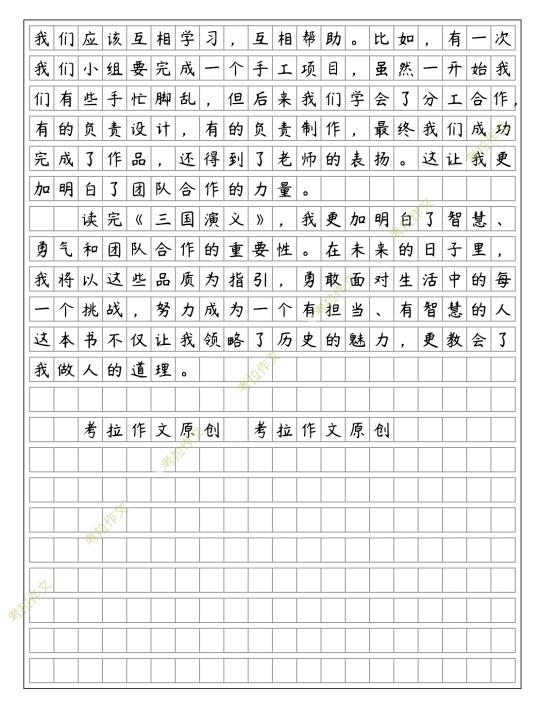 五年级下册第二单元作文,读后感-读《三国演义》有感。这本书让我明白了智慧、勇气和团队合作的重要性。在未来的日子里,我将以这些品质为指引,勇敢面对生活中的每一个挑战。