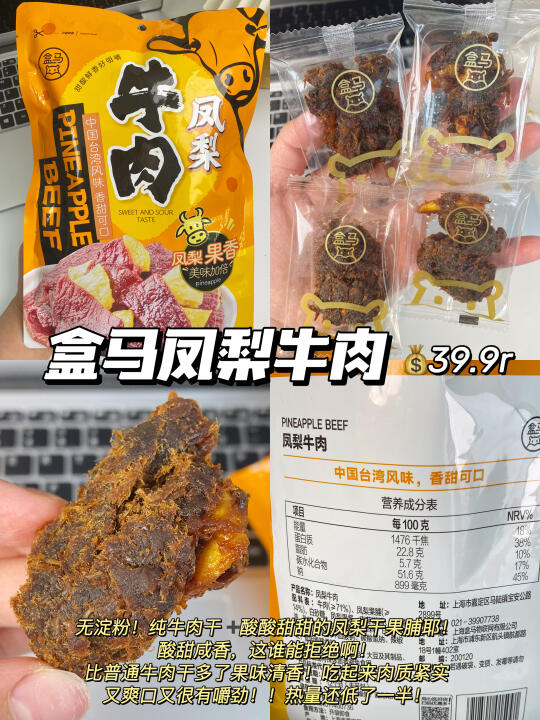 家人们!无淀粉!纯牛肉干➕酸酸甜甜的凤梨干果脯耶!酸甜咸香,这谁能拒绝啊!