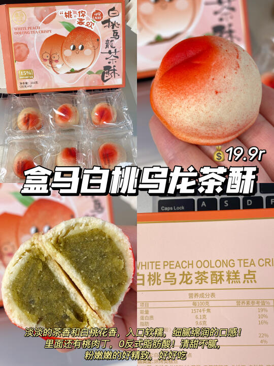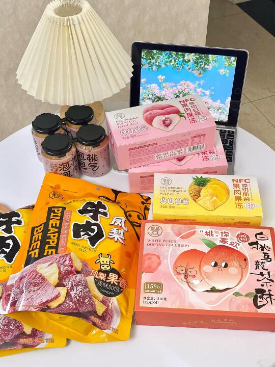 凤梨果冻、凤梨干、蜜桃果肉果冻和白桃乌龙茶酥、都好好吃🤤
