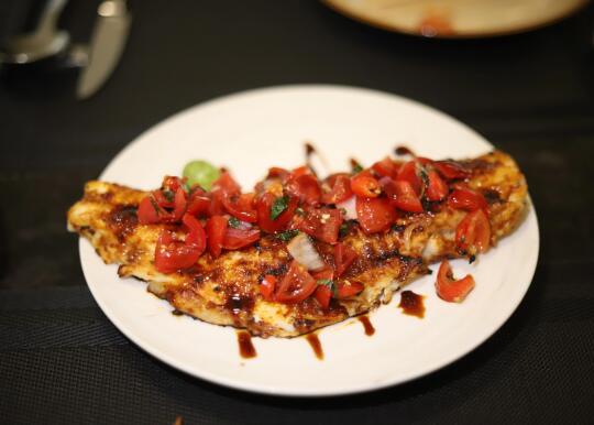 布纳肯岛烤鱼:烤鱼的边边很焦香,加番茄酸酸微辣