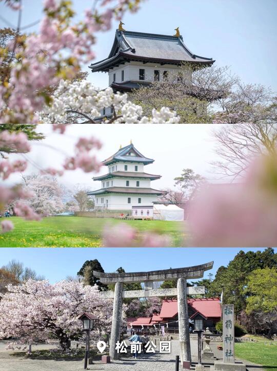 🌸(松前町)松前公园:250余种樱花轮番开放,花期长达1个月,结合江户古城与樱花祭典,历史与自然交融