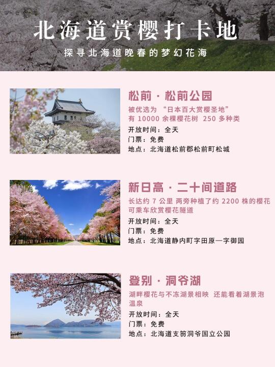 日本的樱花🌸季太浪漫了!相信很多小伙伴3-4🈷️份由于假期安排紧张,无法前往日本🇯🇵欣赏樱花盛宴,别气馁,还有北海道呢❗此时的北海道花海正值盛放美不胜收,为了让你和樱花🌸来一场邂逅,北海道把春天拖到了五一!