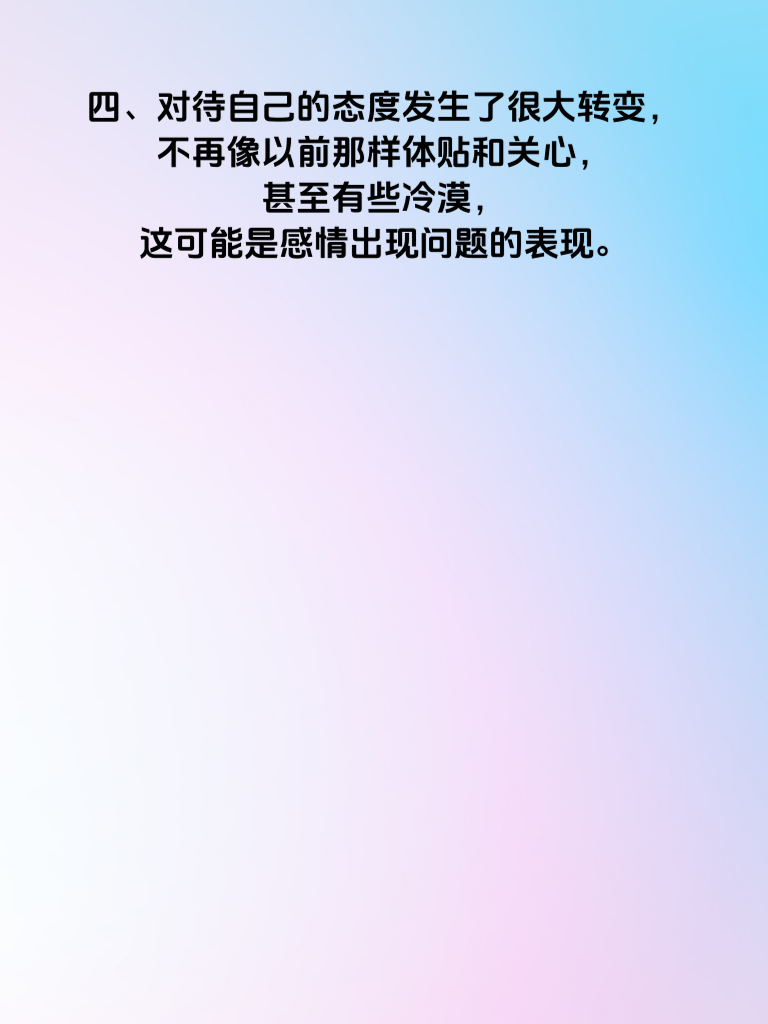 一、曾经对自己的感情十分坚定,如今却开始频繁找借口晚归,回家后也总是心不在焉,这可能是隐藏不忠的信号之一。 二、以前会主动分享生活中的点点滴滴,现在却变得沉默寡言,对自己的事情遮遮掩掩,这种行为变化值得警惕。 三、突然开始注重自己的外表,花费大量时间在打扮上,且经常以加班等理由外出,这或许暗示着有了其他的关注对象。 四、对待自己的态度发生了很大转变,不再像以前那样体贴和关心,甚至有些冷漠,这可能是感情出现问题的表现。