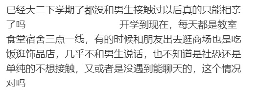 已经大二下学期了都没和男生接触过[哆啦A梦害怕]