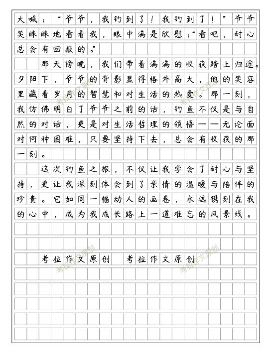 难忘的一件事,初中作文。与爷爷共度的钓鱼之旅,让我终生难忘。