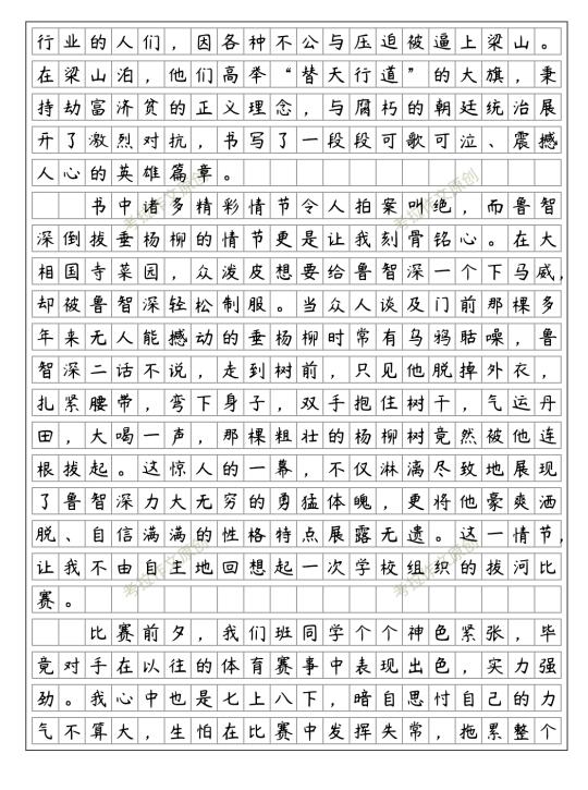 五年级下册第二单元作文-写读后感,《水浒传》读后感,读《水浒传》有感。