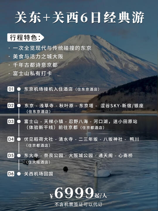 行程特色:一次全览现代与传统碰撞的东京、美食与活力之城大阪、千年古都诗意京都、富士山私有打卡