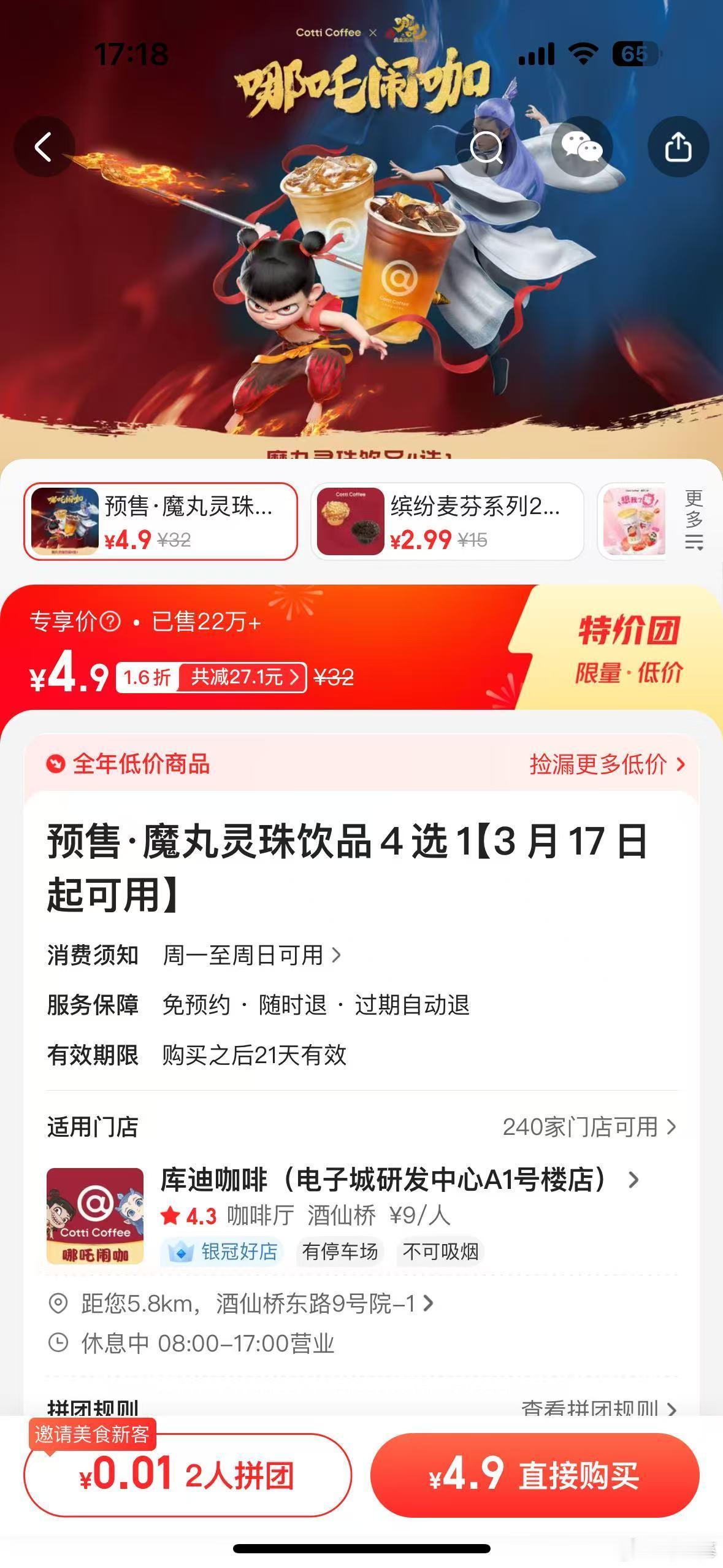上美团团购抢库迪哪吒套餐 自即日起,库迪咖啡魔丸灵珠系列饮品预售正式开启,17日将全面发售。上美团团购,仅需不到5元即可轻松拥有。此系列饮品,品质卓越,口感独特,不容错过。敬请期待,库迪咖啡带给您的新品惊喜! 没人比我更懂怎么追哪吒
