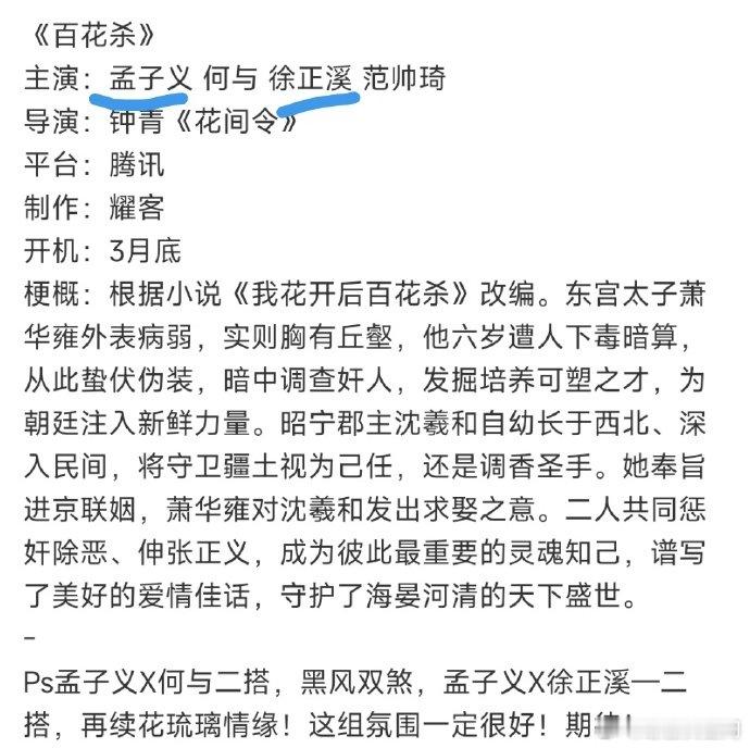 孟子义徐正溪二搭百花杀百花杀》剧组搞快点!? 熟人二搭+颜霸CP,我的会员已经按