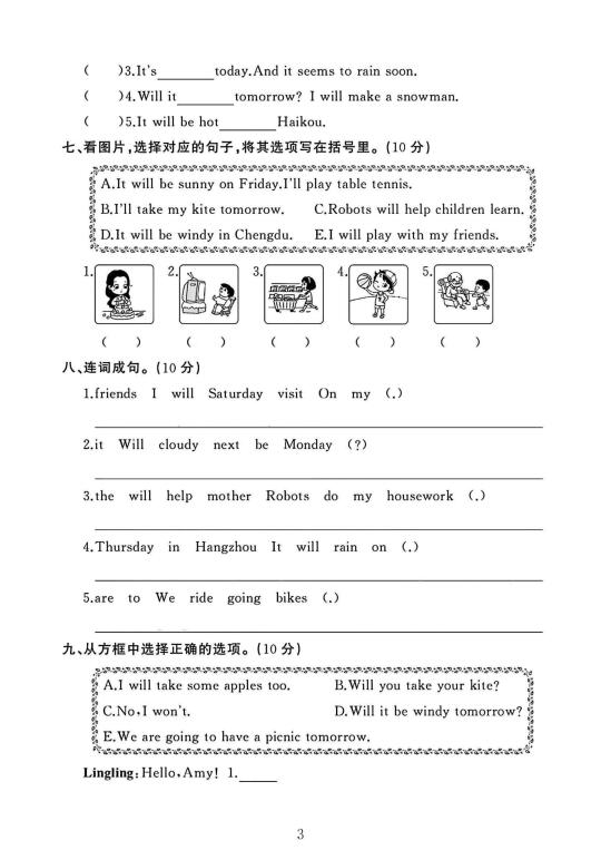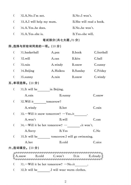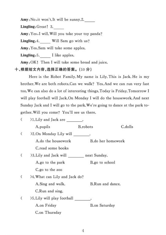 外研版 四年级下册英语 第四单元测试卷 试卷 单元测试 电子版可打印