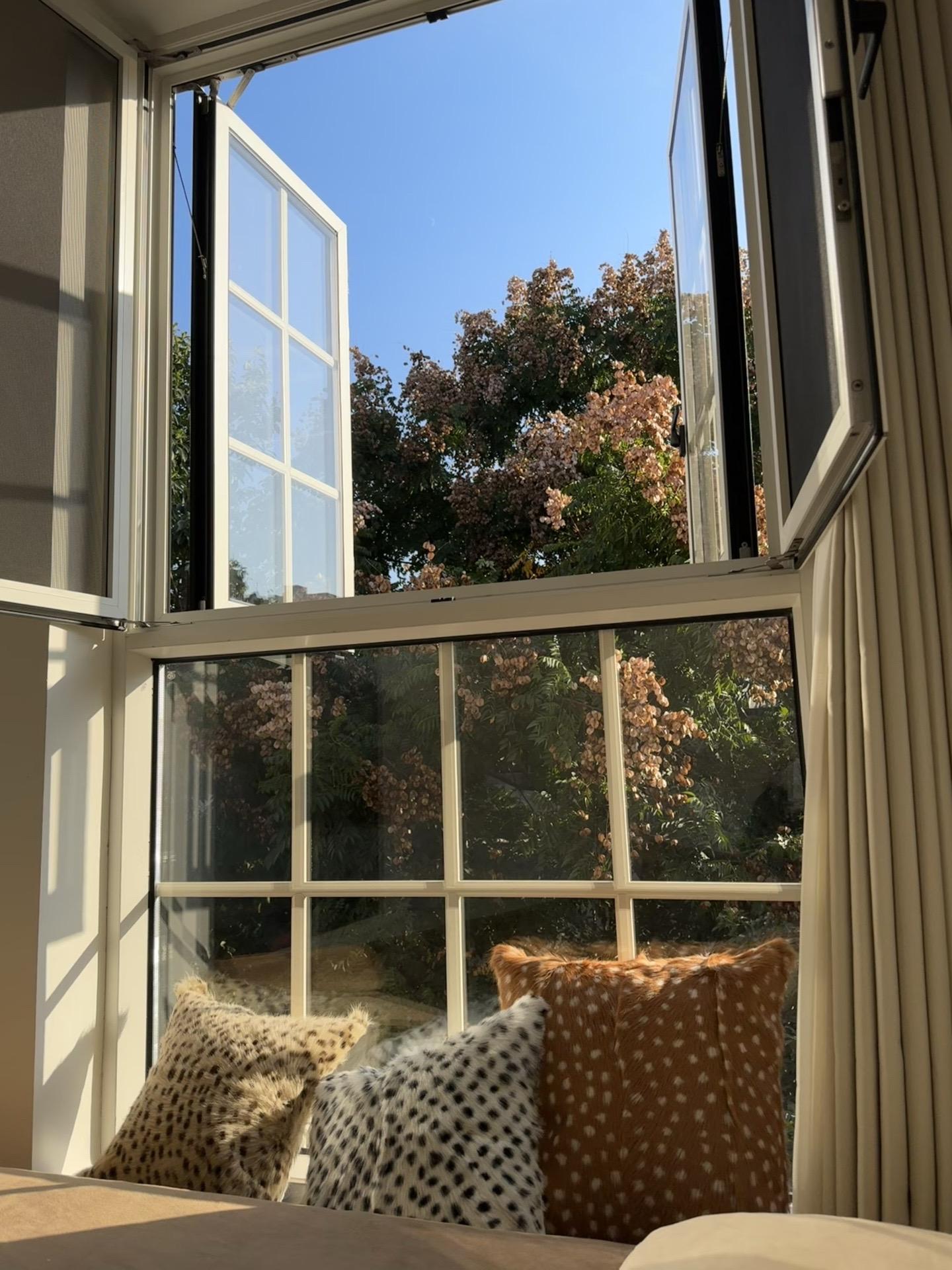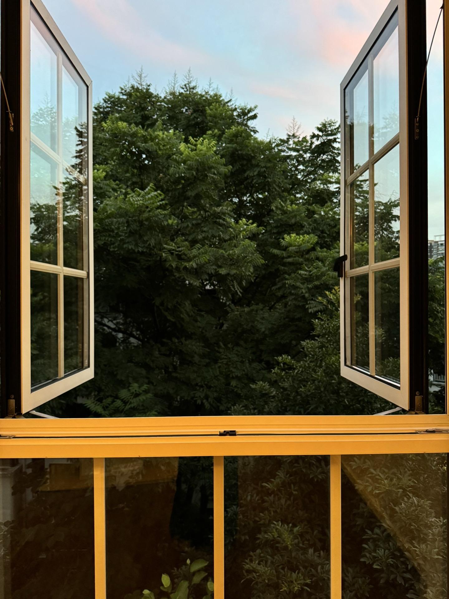 3.对开窗中间的中庭链接在一边的扇叶上,打开对窗可以做到无遮挡。