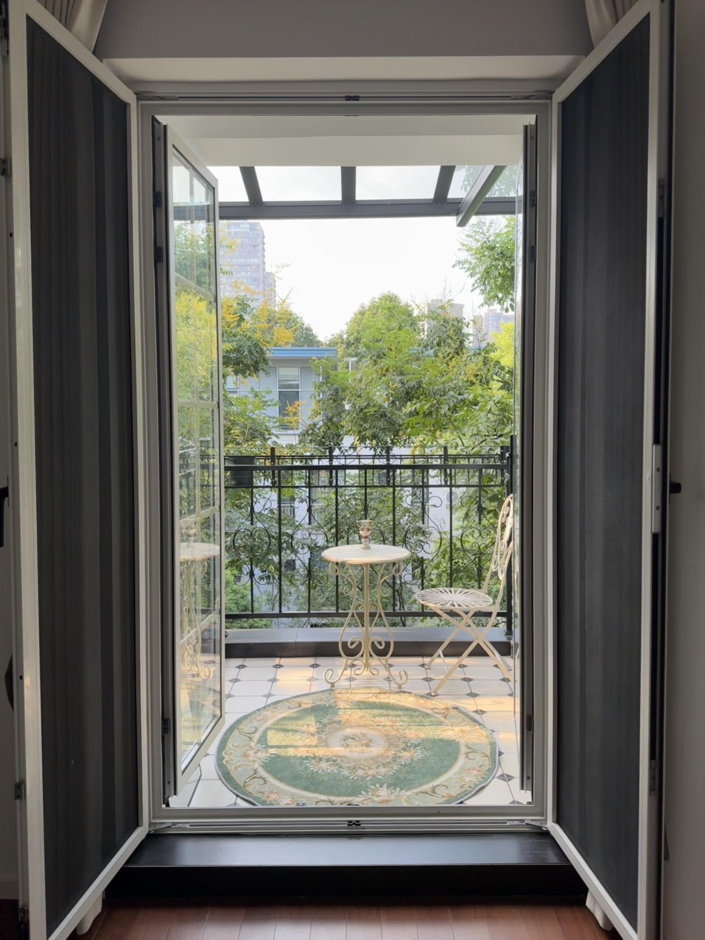 4.断桥铝有配套的纱窗,所以一扇开扇有两扇窗叶。因为纱窗基本是关闭状态所以做的内开,玻璃外开。纱窗选择的高透网,又高清又通风。