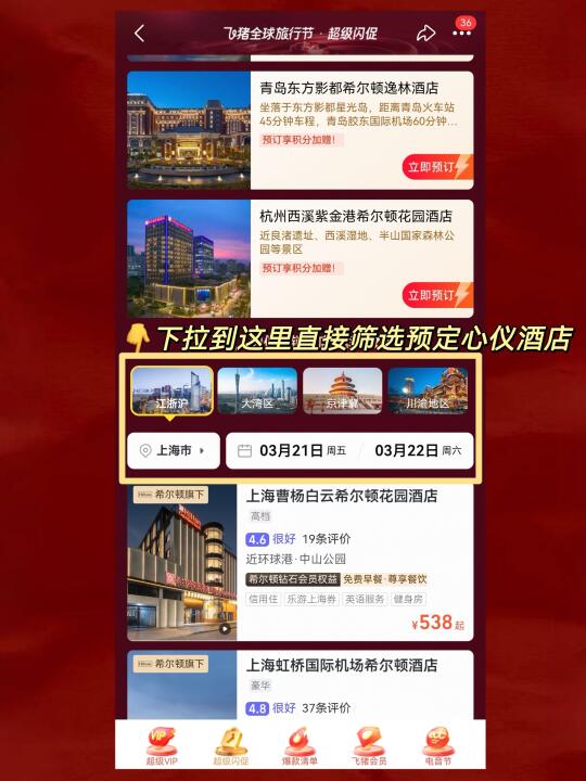 📝打开飞猪旅行app,🔍闪促真划算 就可以找到活动会场啦
