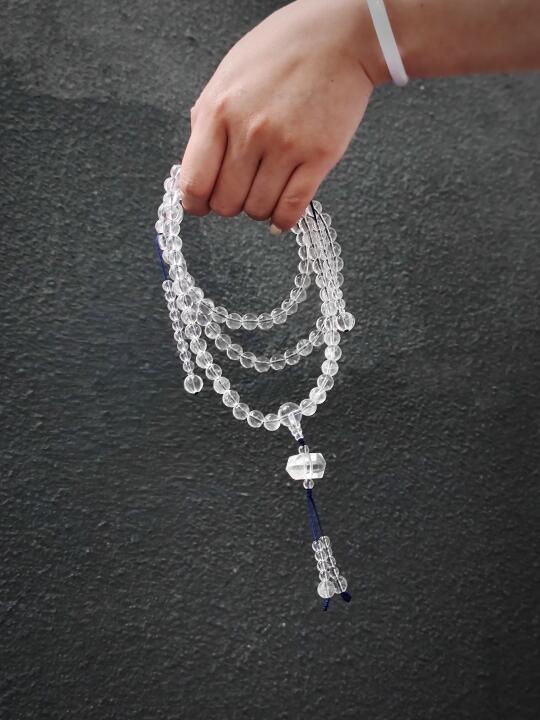这个是我们¥168白水晶108[搜索高亮]基础版的升级版 增加了计数器,水晶柱背云,南瓜珠顶珠 换了蓝色的线,看上去更有清冷感 像月光石和海蓝宝 介于A与B级的水晶通透度确实绝绝子 还是微微的有一点点棉 这样更真实吧 你还有什么升级的版本呢? 欢迎在评论区晒图:特别精致的,大家赞美最多的,会抽取免单。