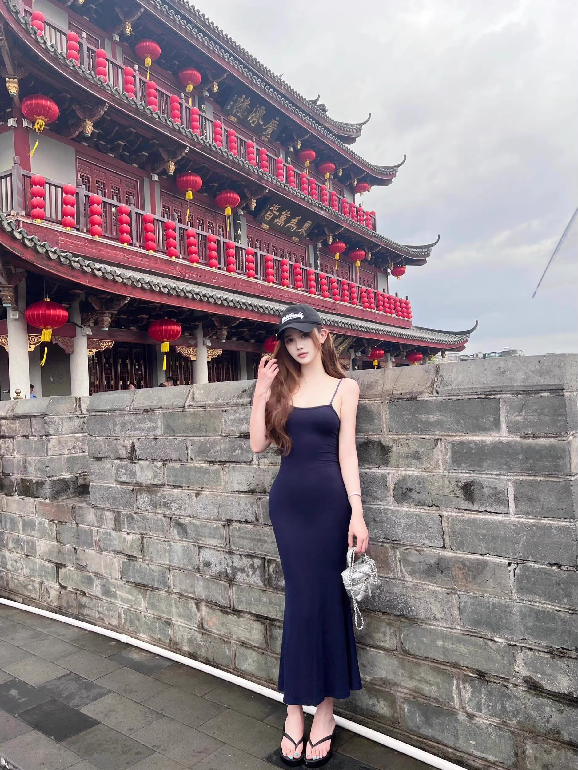 2025新款法式深蓝色吊带性感辣妹连衣裙