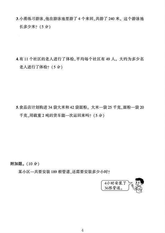 人教版三年级数学下册第四单元素养评估卷