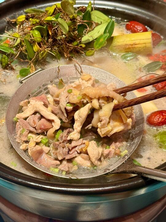 我大杭州终于也有了!甘蔗养生鸡煲好好吃啊🤤 上桌满满一大锅🔥 甘蔗➕茅草根➕石橄榄🫒 搭配剔骨鸡肉🍗味道清甜,鸡肉鲜嫩多汁,连甘蔗也是可以吃的!!鸡肉蘸上蘸料真的又清甜又嫩! 还有敲大个的乌龟菠萝包🐢9.9r的自助甜品🍮现点现拌的虾生🦐连胸口油都有!!! 这家真的是我的宝藏店铺!离开杭州前一定要去吃!!!!