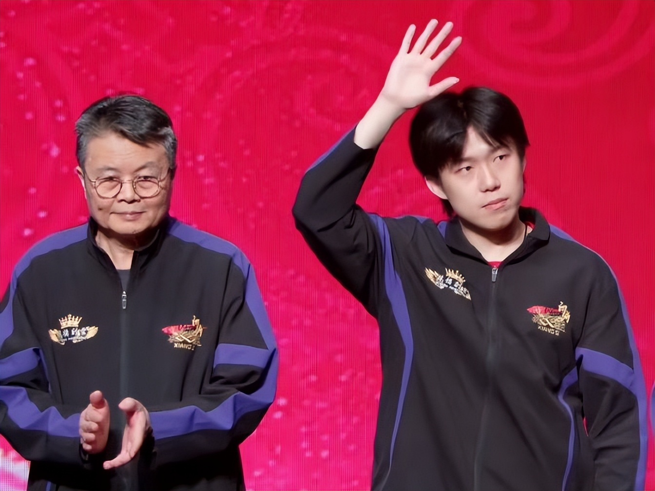 2025年12月28日,随着乒超联赛结束,整个赛季也是落下帷幕,就在男团颁奖仪式,王楚钦与队友们捧起奖杯,向外界球迷挥手示意,梁靖崑儿子上台跟大家一起领奖,刘国梁恩师尹肖鼓掌。