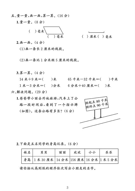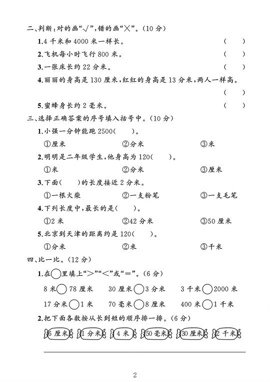 北师大 二年级下册数学 第四单元测试卷 单元测试 试卷 电子版可打印