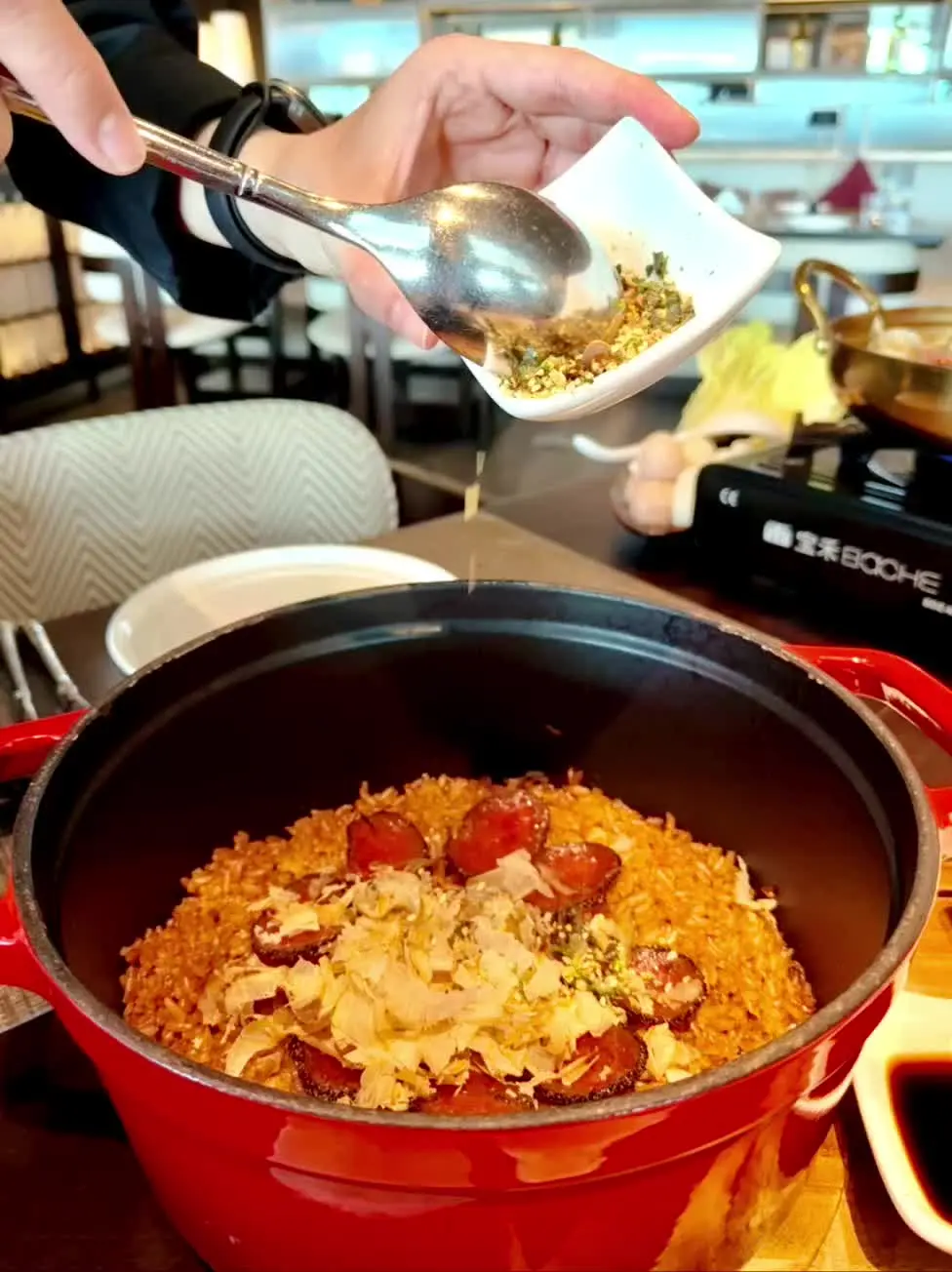 竟然发现老板娘私藏VIP室➕隐藏菜单! 心思思又想去明知吃漂亮饭了,果然又换主题了!纯白纸艺,真的很高雅耐看👍主厨端上新菜品「燃冬仙贝暖暖锅」和「西班牙臻味腊香焖饭」,我们又味蕾大开了! 买单时店员神秘一笑:“要不要看老板娘的秘密?”推开暗门,VIP室太惊艳了!很有格调呢!阵列架上都是女主的珍藏,太有品位了!这里的菜品还是私人定制的,脑子里的高端饭局立刻呈现😂。我心想:“今年公司年会晚宴订这,老总一定夸我!” 📍地址藏评论区!记得穿文艺风来,分分钟出大片~