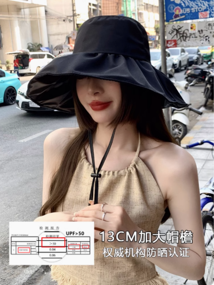 夏季防紫外线新款UV黑胶防晒渔夫帽!