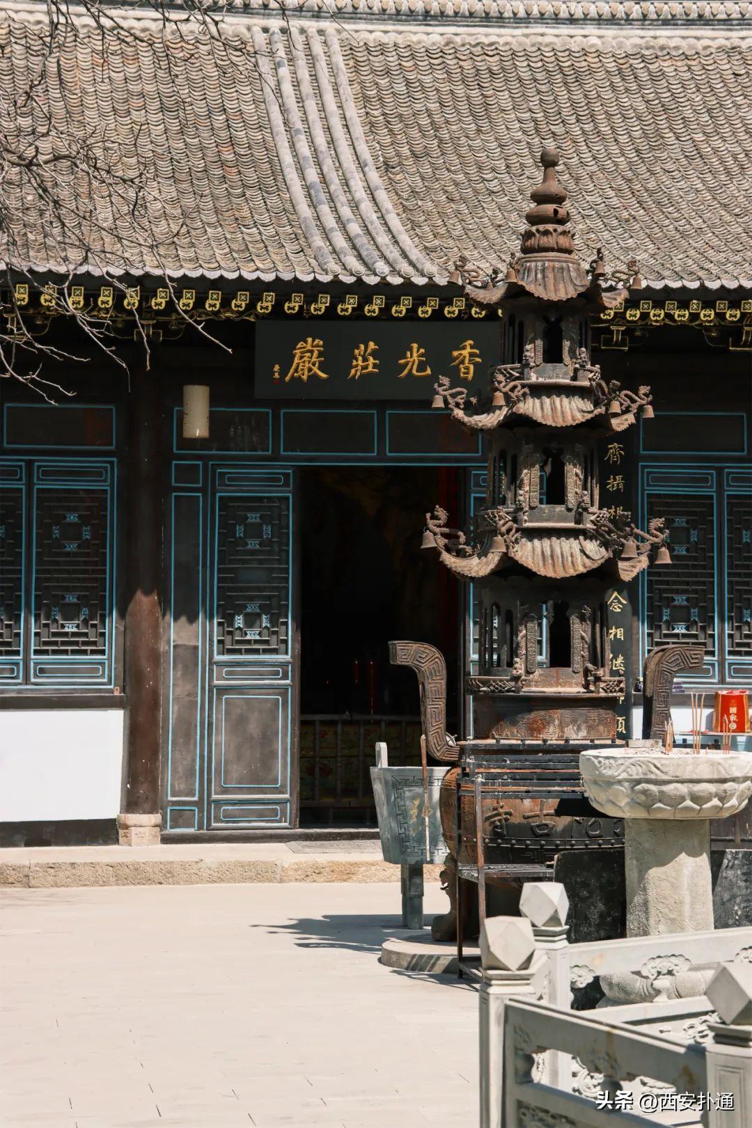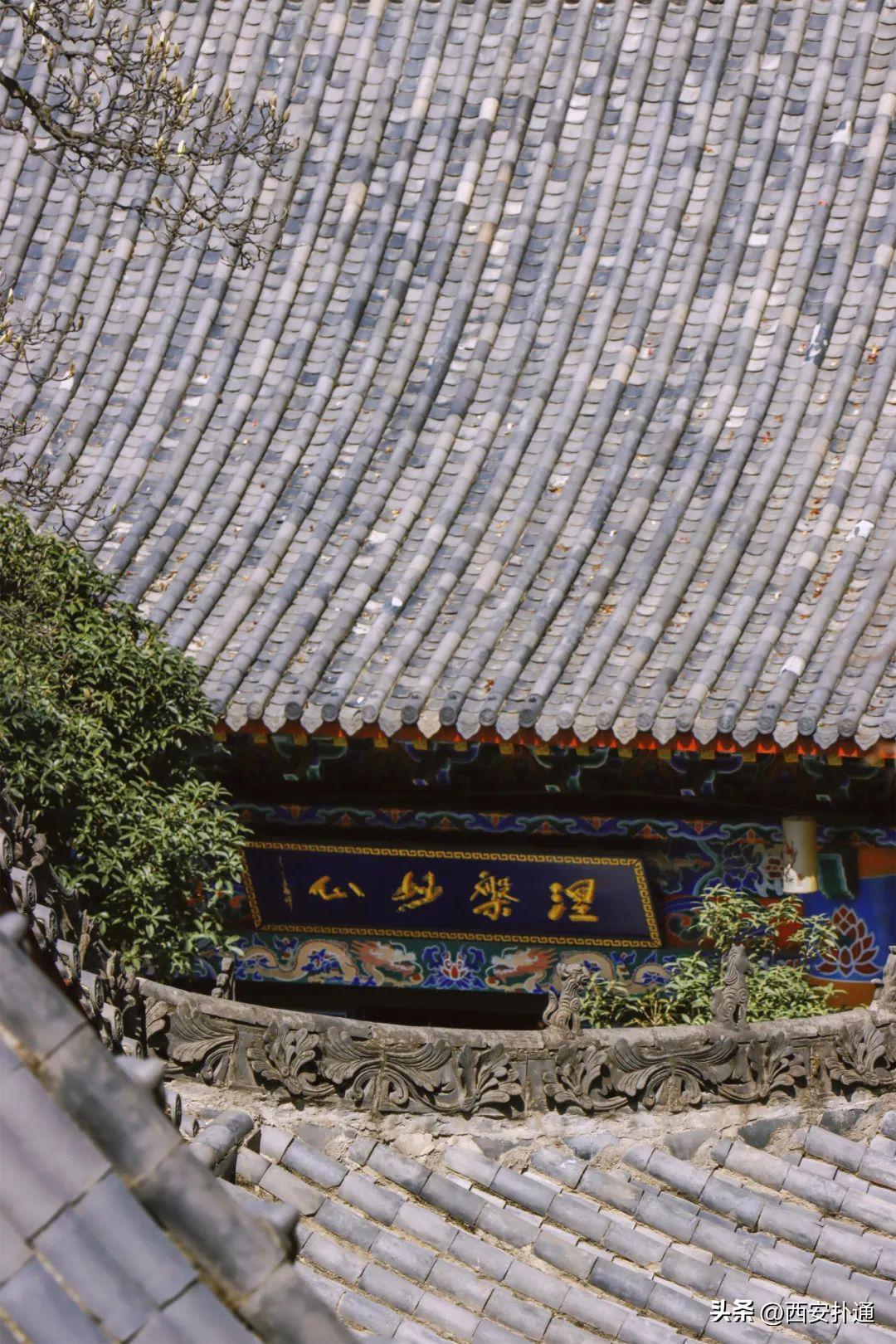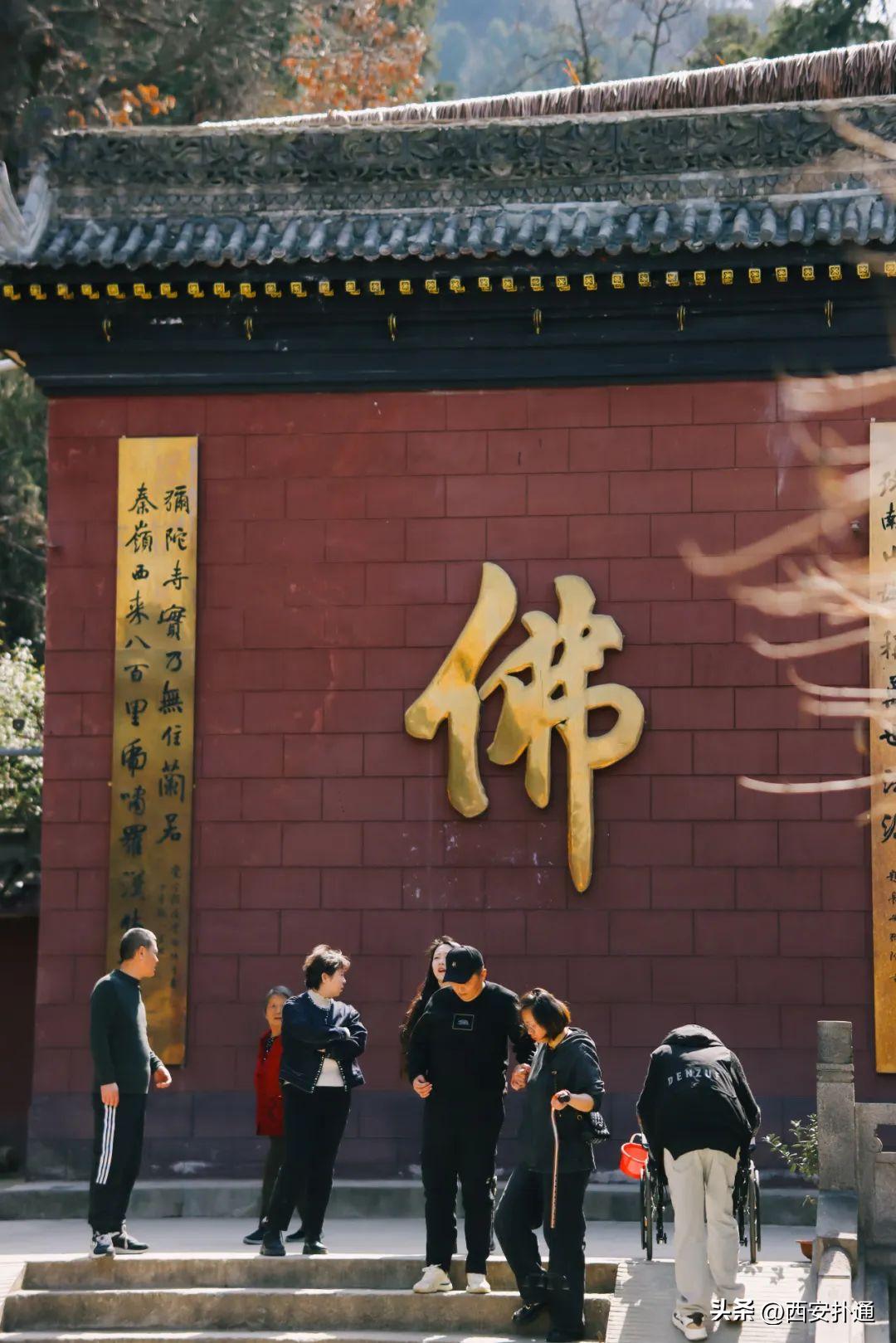3️⃣除了赏花,也可以静下心来逛一逛这座清幽古寺。弥陀寺始建于隋开皇八年(588),距今已有1400多年。后来历经兵火祸乱,几废几兴。如今所见的建筑群,虽然是上世纪八十年代重修而成,也依然能欣赏到古寺的清净庄严,寺庙一侧还倚靠着秦岭,依山傍水,很有意境。