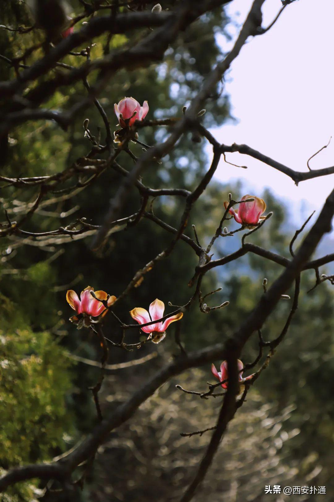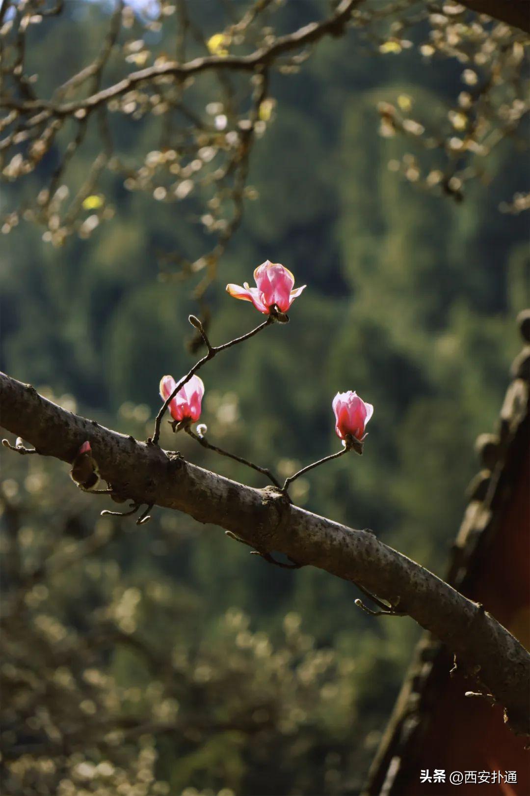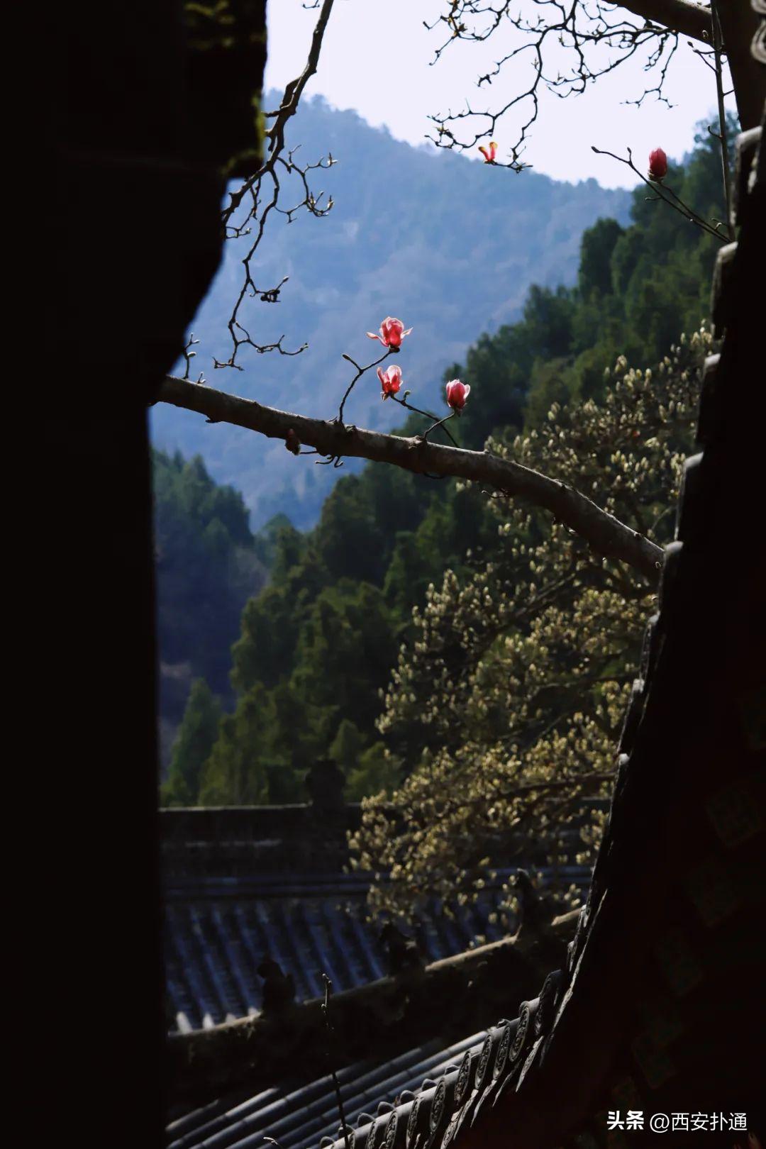 🌸🌸🌸气温一天比一天高,花也越来越多,除了城里,西安这处秦岭古寺的玉兰也开花啦!