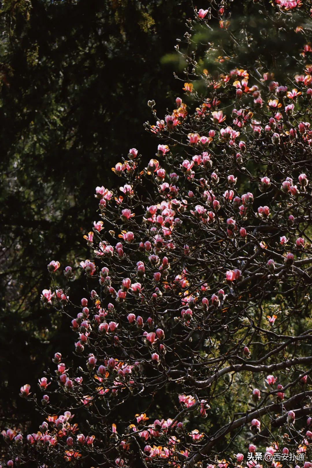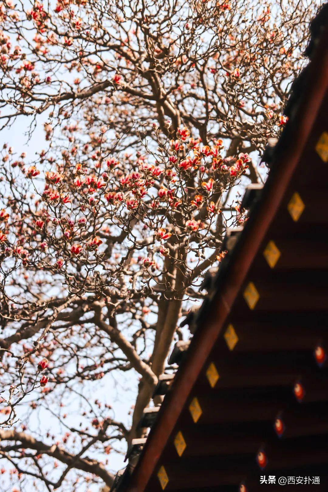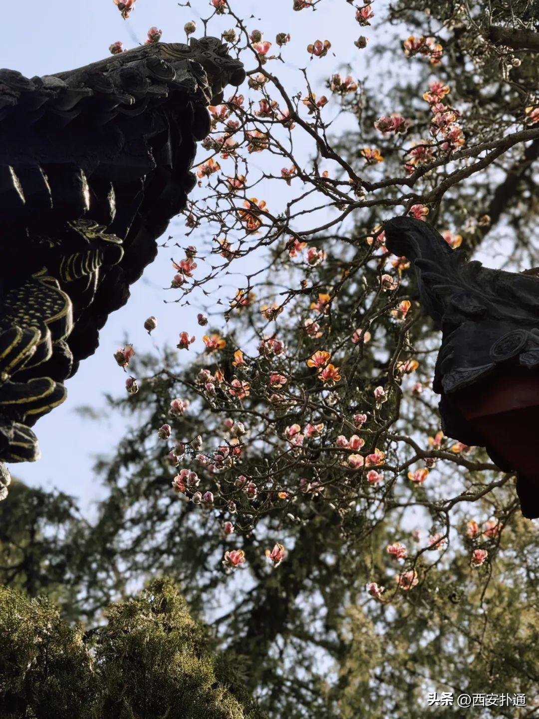 🌸🌸🌸气温一天比一天高,花也越来越多,除了城里,西安这处秦岭古寺的玉兰也开花啦!