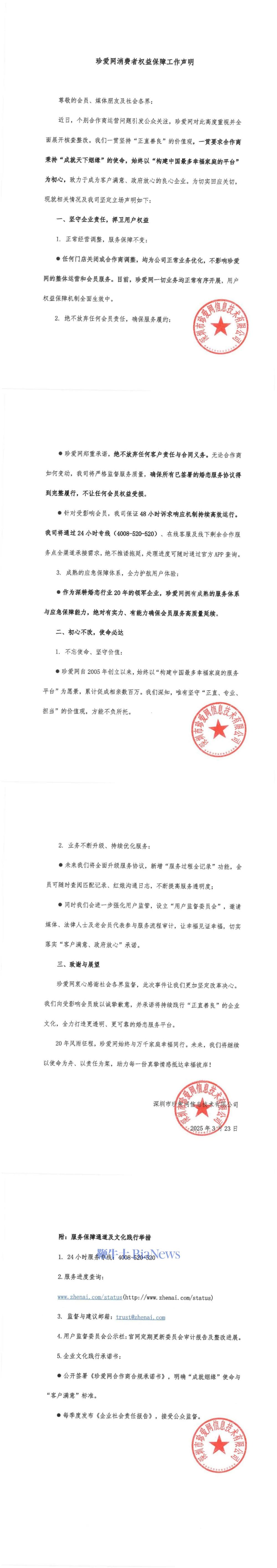 声明表示,任何门店关闭或合作商调整,均为公司正常业务优化,不影响珍爱网的整体运营和会员服务。目前,珍爱网一切业务均正常有序开展,用户权益保障机制全面生效中。