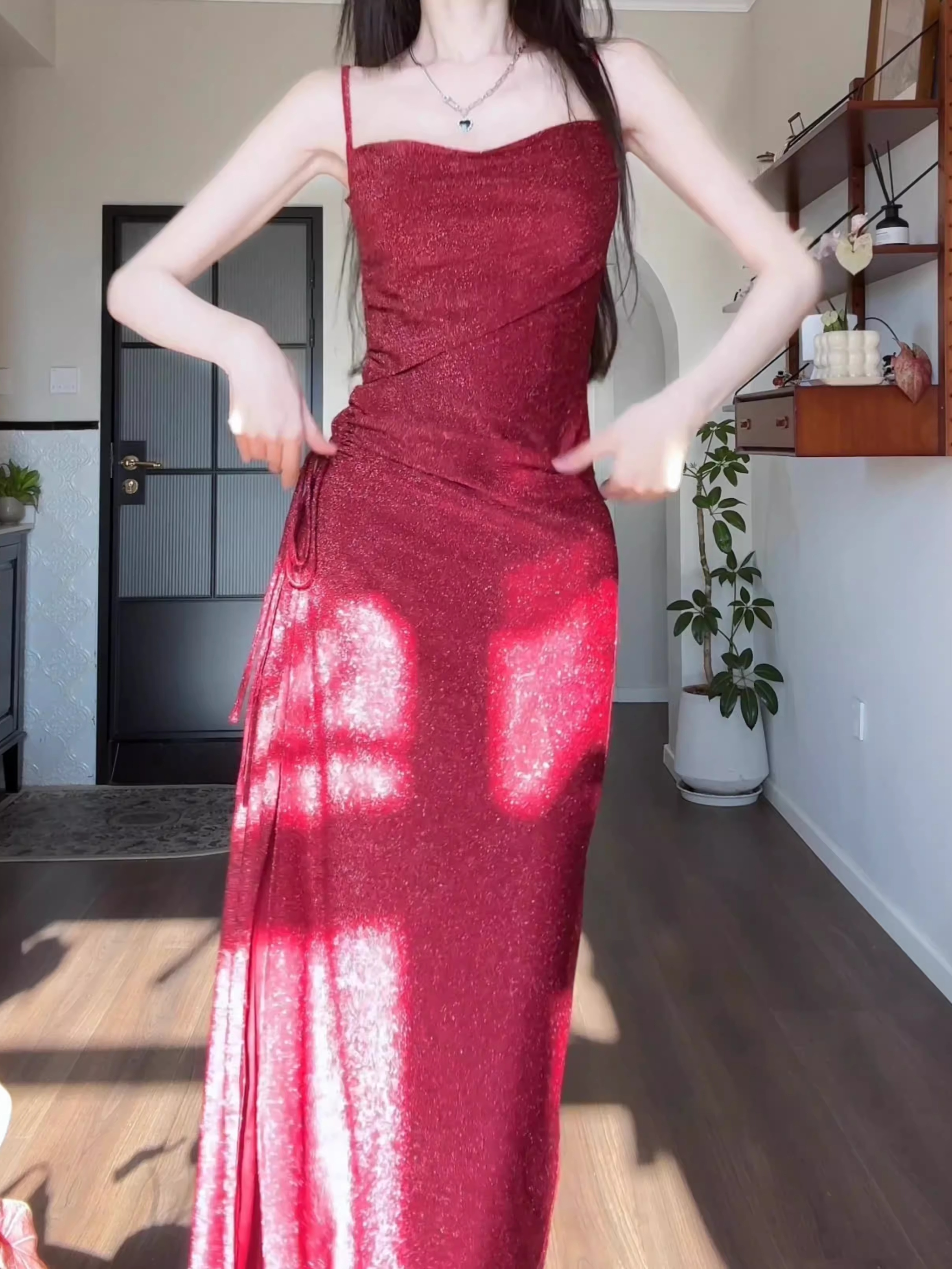 🌺 嗨宝贝们,今天我给大家带来的是一款红色吊带裙。夏天的颜色,红色的热情,是不是让人一看就心动呢?