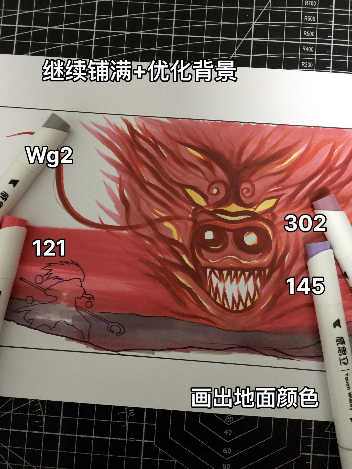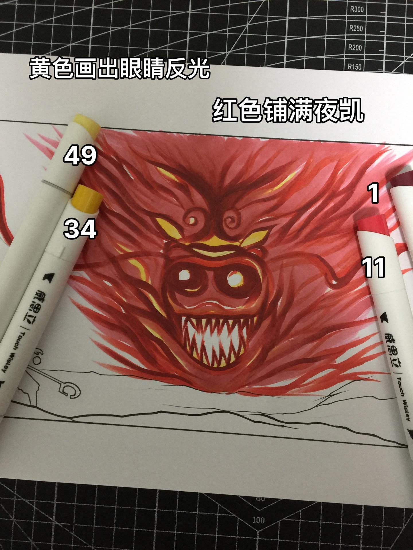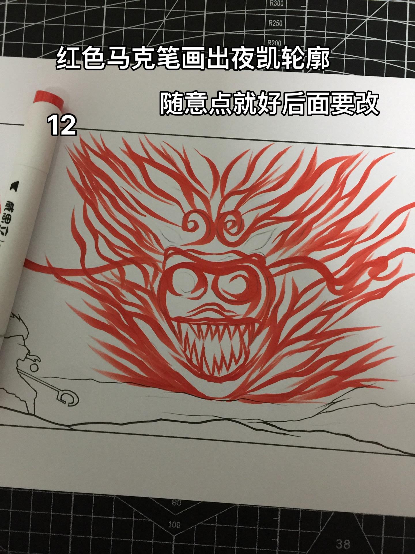 燃烧青春吧!夜凯! 夜凯 夜凯vs六道斑 八门凯 手绘 绘画过程图 绘画马克笔:威思立一代