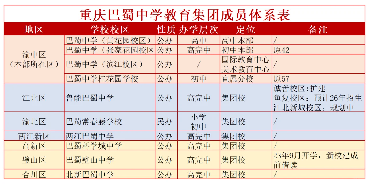 🚀重庆升学避坑,巴蜀中学成员一图说清❗