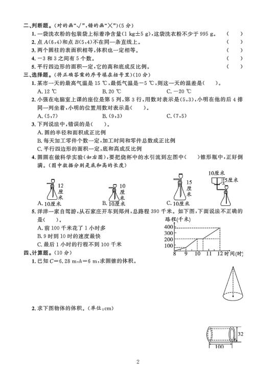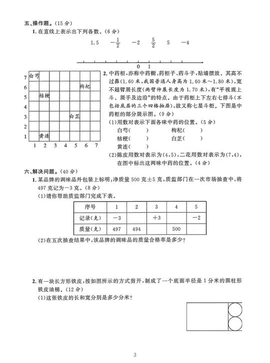 冀教版 六年级下册数学 期中考试 期中 试卷 电子版可打印 🈶word