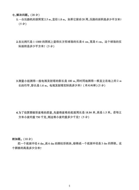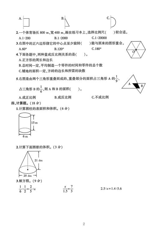 北师大 六年级下册数学 期中考试 期中 试卷 电子版可打印 🈶word