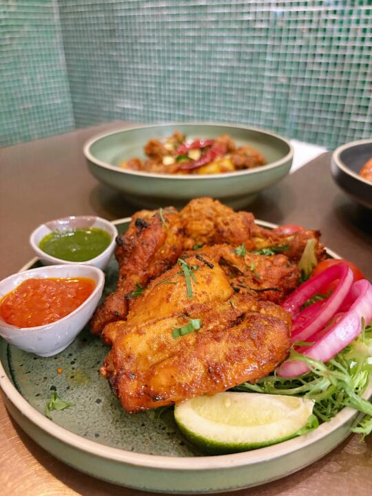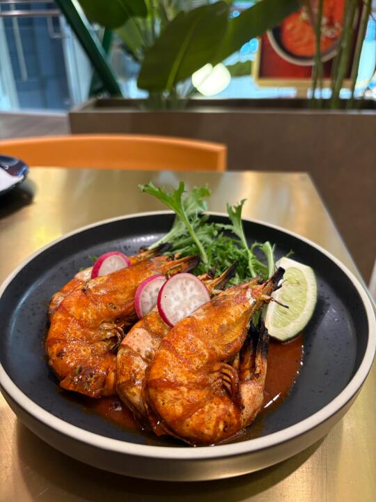 酸甜鸡翅根有点炸鸡的口感,也不辣很香好吃。炭烤黑虎虾特别好吃,Q弹的虾肉很新鲜,炭烤味道真是好,带有虾肉自己的鲜甜味。奶油蘑菇汤很美味,芝士烤饼当做主食不错,还有黄油、原味等可以选择。餐厅新开业还有优惠,在来福士这个地段,人均真的不贵。