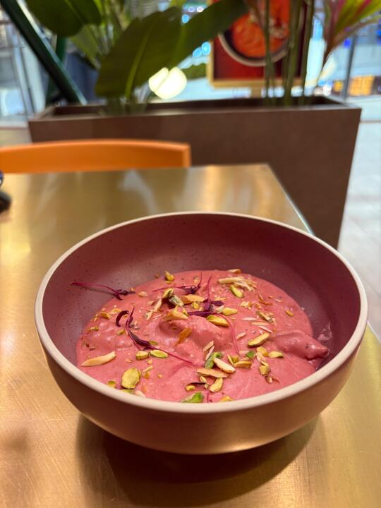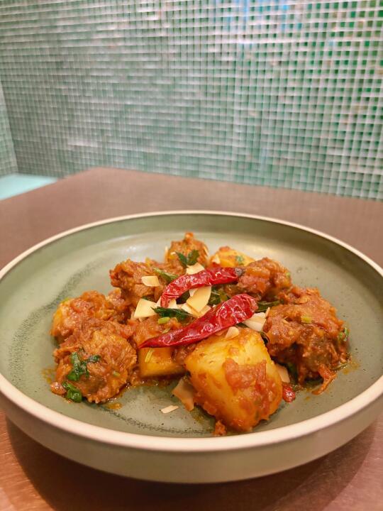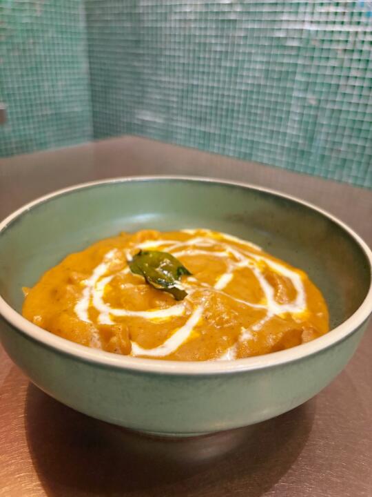 餐厅叫BF·黑烻·印度创意料理,在来福士7楼,装修风格很有印度特色,连服务员也是印度人。点了几个好评蛮多的菜,粉色樱花咖喱是用火龙果和咖喱做的,和春天很应景,味道也好。奶油鸡肉咖喱吃口不辣,奶香很足,涂在烤饼上也很好吃。