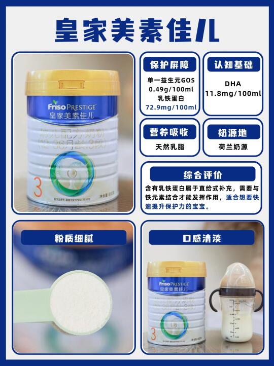 🛡自护力:0.49g/100ml单一益生元GOS+72.9mg/100ml乳铁蛋白,主打乳铁蛋白,但需要与铁离子结合,且属于直给式补充,适合想要快速提升体质的宝宝