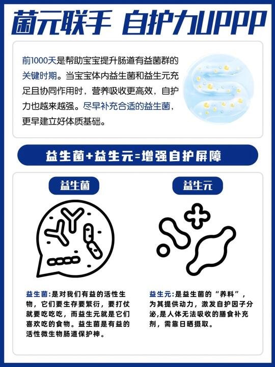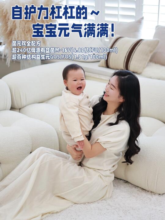 🛡自护力:超240亿母源有益菌M-16V(4.83亿CFU/100ml),这可是健康宝宝肚肚同款有益菌,也是获得多国认证的婴儿可食用菌。配合1.31g/100ml超百种结构益生元GOS/FOS,对内壮大有益菌队伍,对外2.7倍激发自护因子生长,菌元合作助力宝宝长效自护力内循环