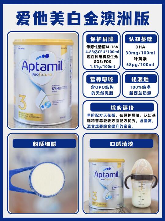 要知道肠道是我们主要防御系统,想要提升宝宝自护力,需要从守护娇弱的肠道入手!所以我更青睐实证有效、成熟且能直接作用于肠道的菌元配方的早阶配方天花板——爱他美白金澳洲版
