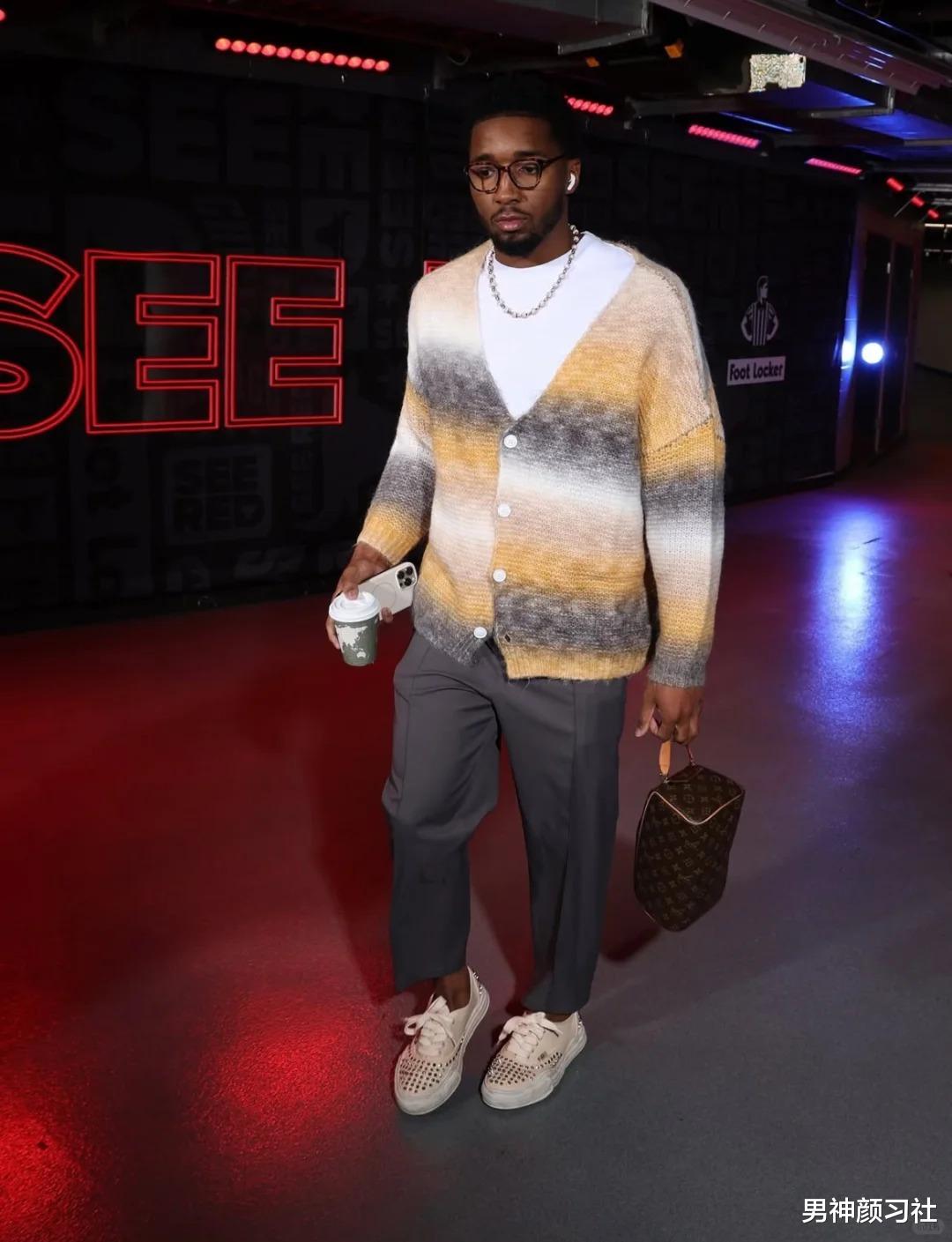 黄灰拼色的开衫则更有成熟感,配上灰色西装裤,是那种低调又很会穿的感觉。整个人看起来轻松、体面、不费力。