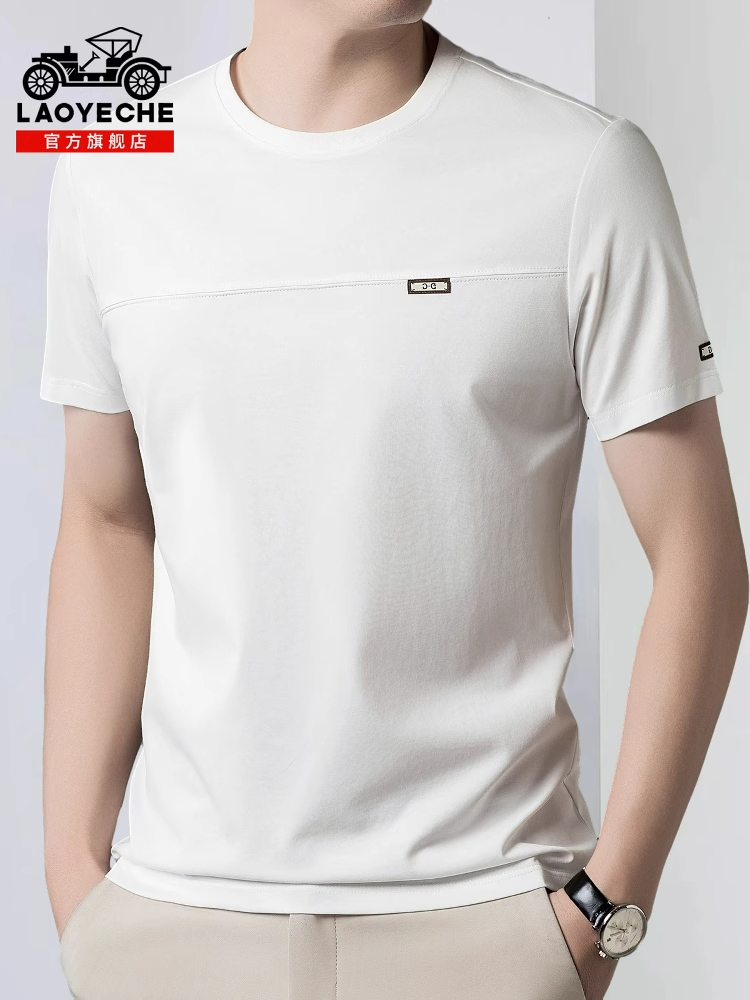 2025新款丝光棉商务T恤,爸爸夏季必备!高端纯色设计,百搭宽松,展现休闲魅力。